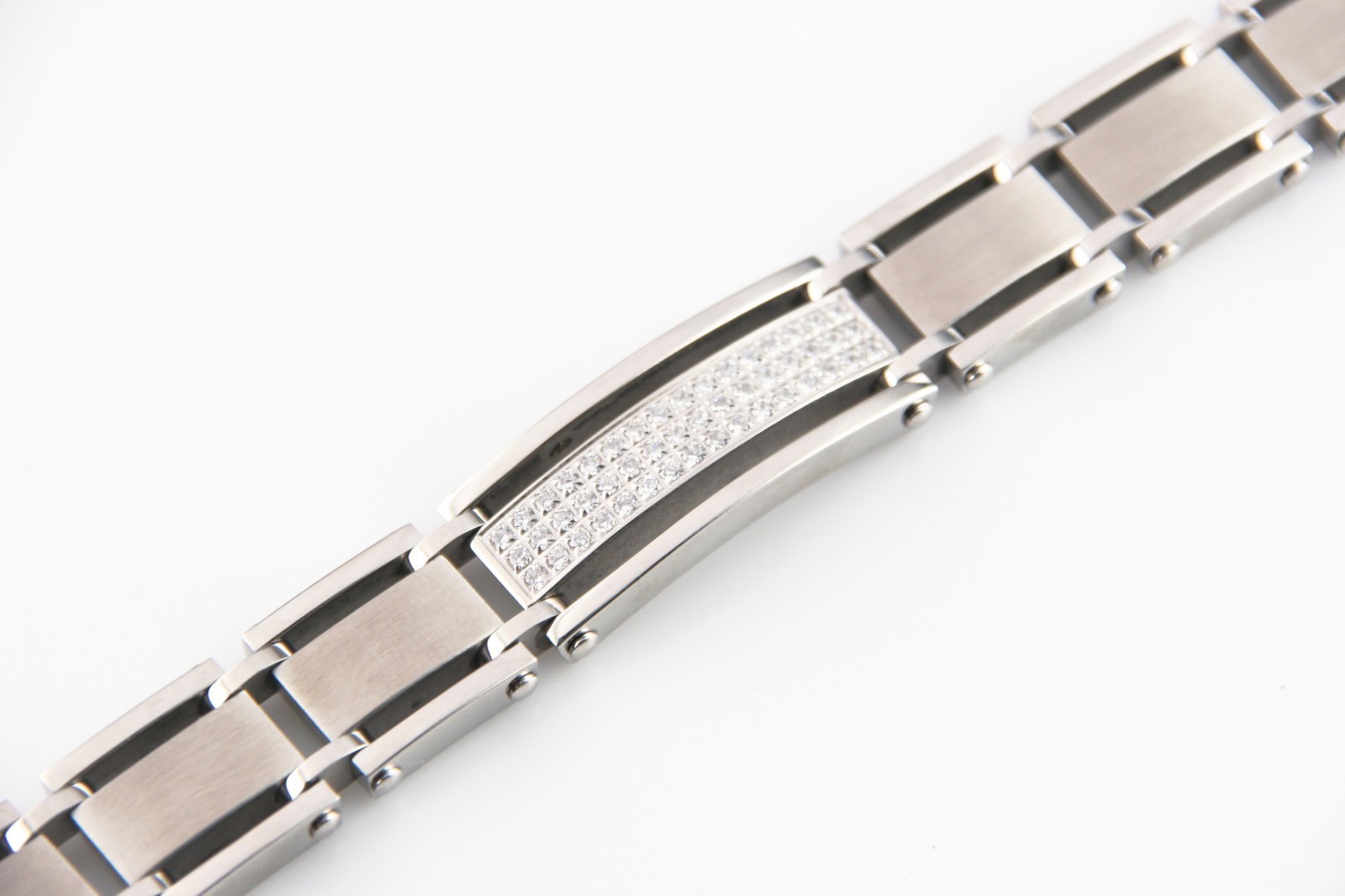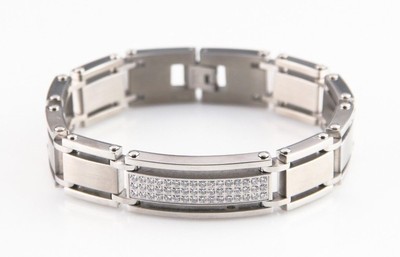 - Stainless Steel Link Bracelet w/ Gorgeous Diamond Plaque TDW = 1 ct SI-1, G-H
