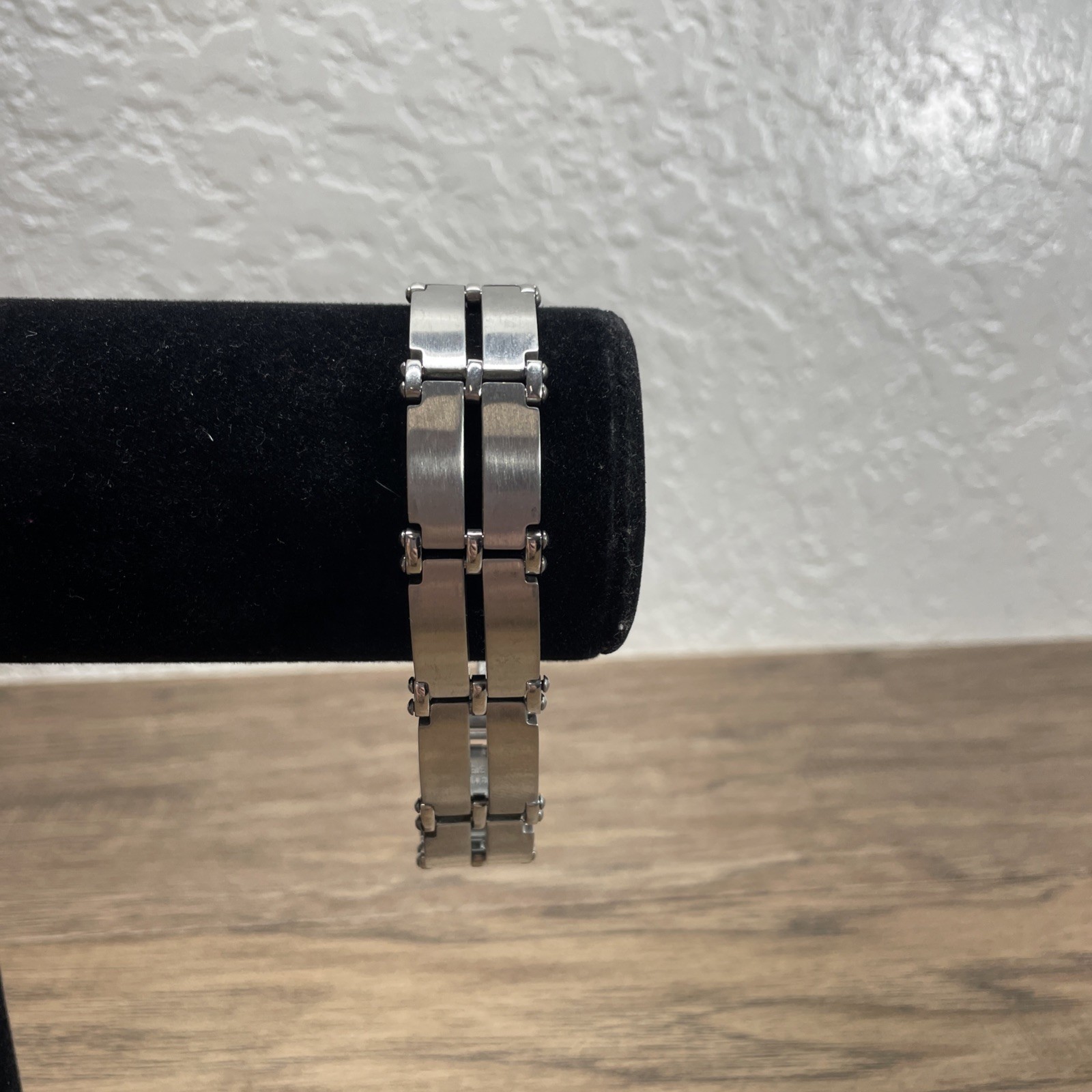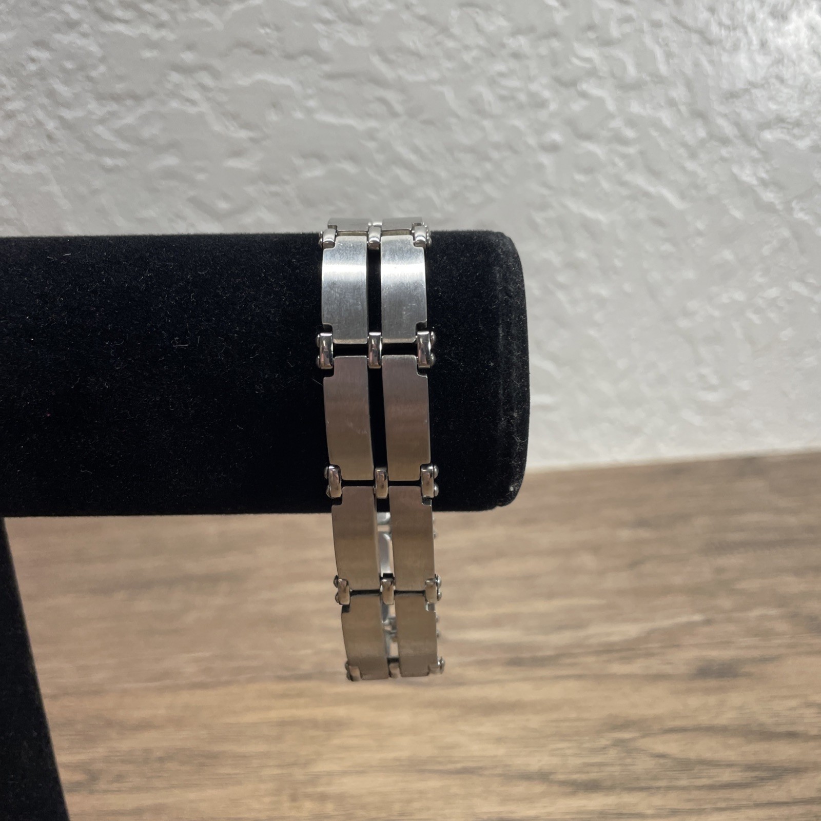 - Stainless Steel Linked Bracelet 8.5" Box Clasp Fashion Jewelry Estate Find KG JD