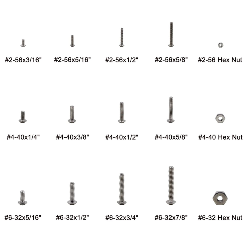 #2-56: 4 screw sizes (3/16", 5/16", 1/2", 5/8") ? 20pcs each + 50 nuts