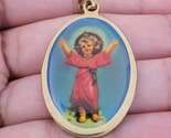 Beautiful gold-colored stainless steel pendant with a religious image of the Divine Child