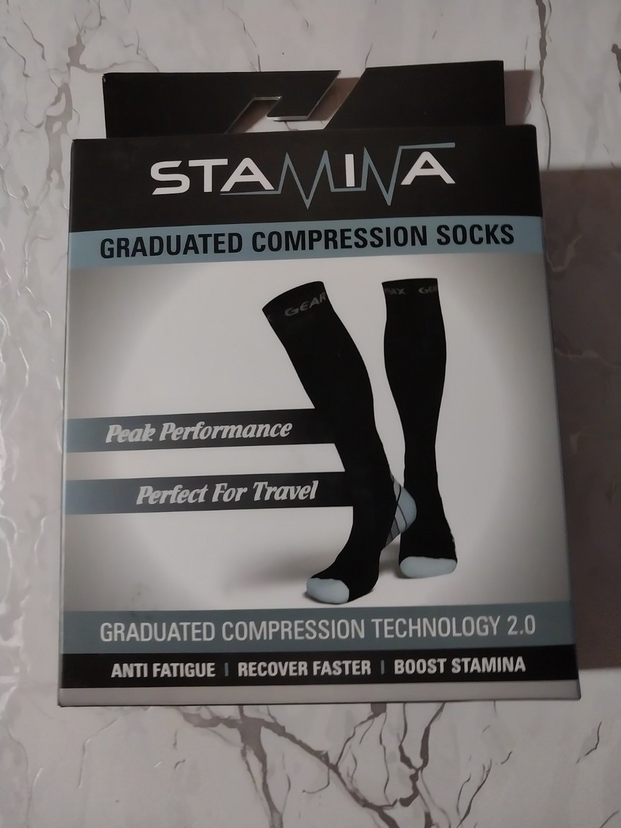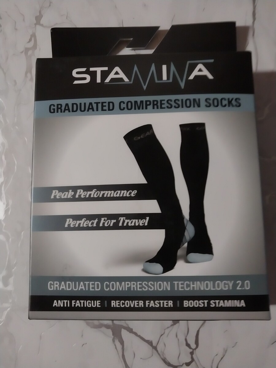 - Stamina Graduated Compression Socks L-XL New Black and Grey 20-30 Compression