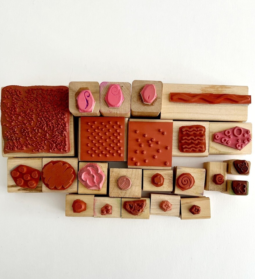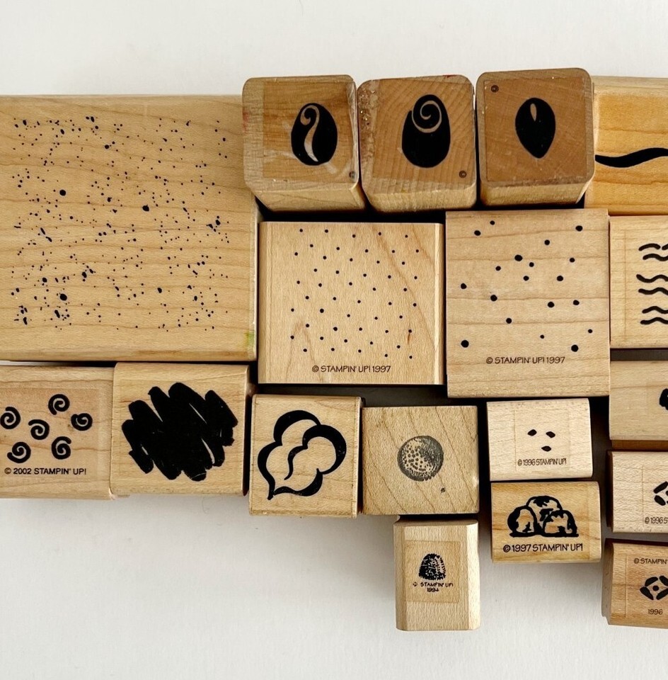 - Stamp Lot of 23 Vtg & New & Used Wood Rubber Designs Swirls Spirals Flowers E56