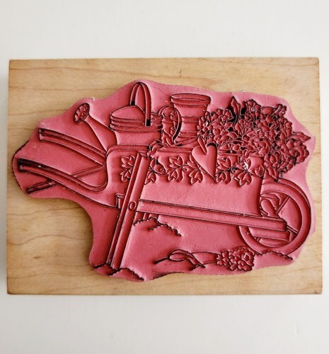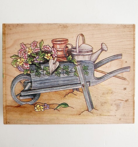 - Stamps Happen Rubber Stamp Wheelbarrow Vintage Karen Mohr Floral Crafts E15