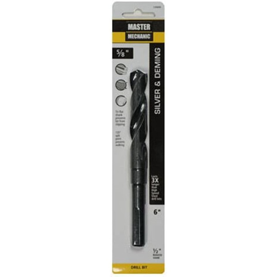 Master Mechanic, 5/8" x 6", Silver Deming, High Speed Steel, Black Oxide/Titanium Drill Bit, Jobber Length, 1/2" Reduced Shank, 3-1/8" Flute Length, Black Oxide Surface Finish Improves Chip Flow Increases Abrasion Resistance, Recommended For Drilling Wood, Plastic Soft Metals, Used In Machine Shops Using Screw Machines Or Where The Maximum Chuck Capacity Is 1/2", Carded.