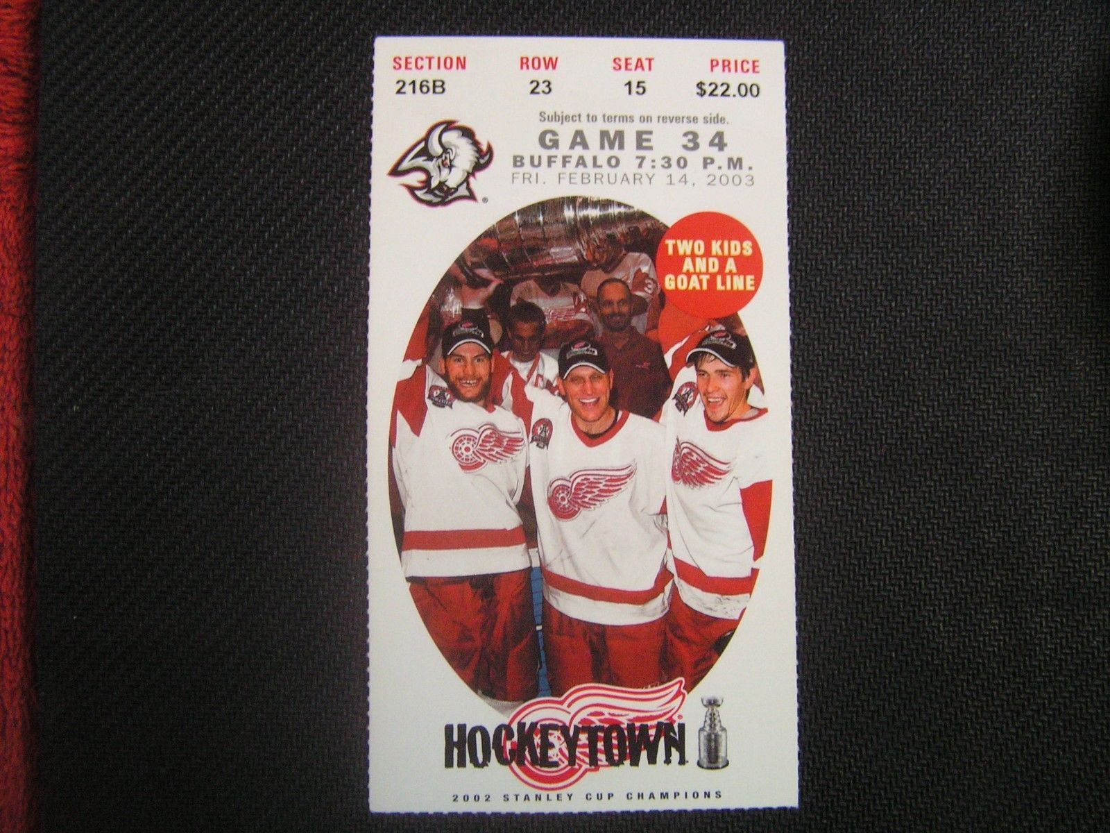 - Stanley Cup Champions 2002-03 Detroit Red Wings Ticket Stub Vs Buffalo 02-14-03