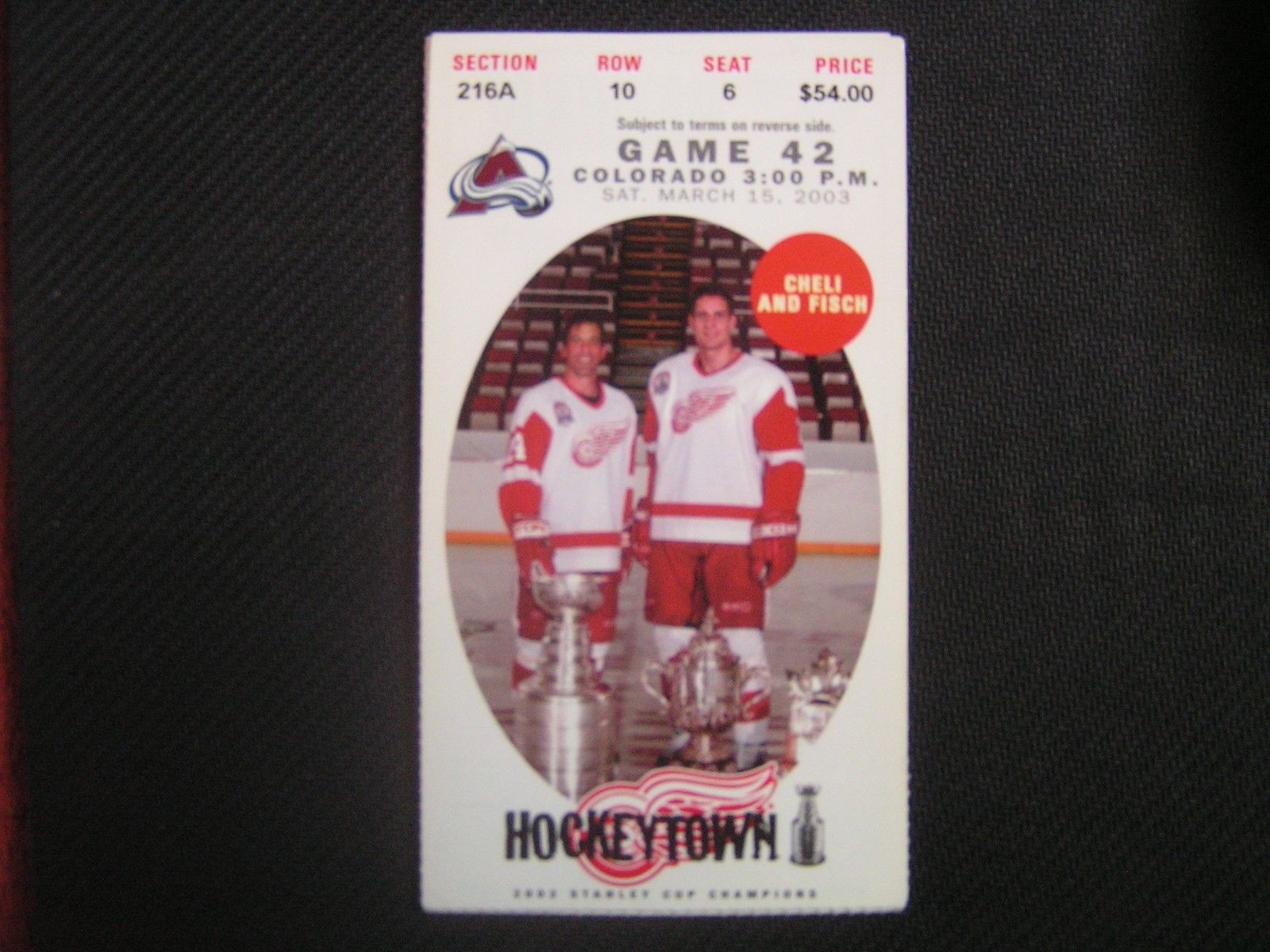 - Stanley Cup Champions 2002-03 Detroit Red Wings Ticket Stub Vs Colorado 03-15-03