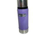 Stand out with this Stanley Classic Vacuum Bottle in a rare purple color. This 16oz (0.5 quart) thermos is built tough with Stanley?s signature double-wall insulation, keeping drinks hot or cold for hours. Features a stainless-steel lid that doubles as a cup and a twist stopper for easy pouring. Preowned with light cosmetic wear on the base (see photos), but clean inside and ready to use. A great addition for collectors, or anyone looking for a bold, retro Stanley thermos.