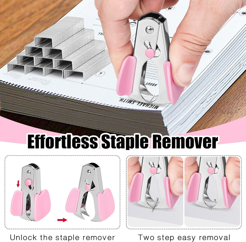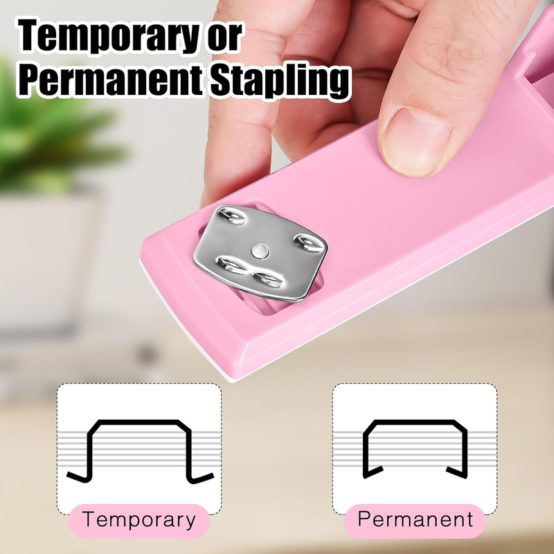 Its sleek pink design adds a touch of professionalism to your desk setup. This versatile stapler is perfect for organizing documents, reports, and more, making it an essential tool for productivity and efficiency.