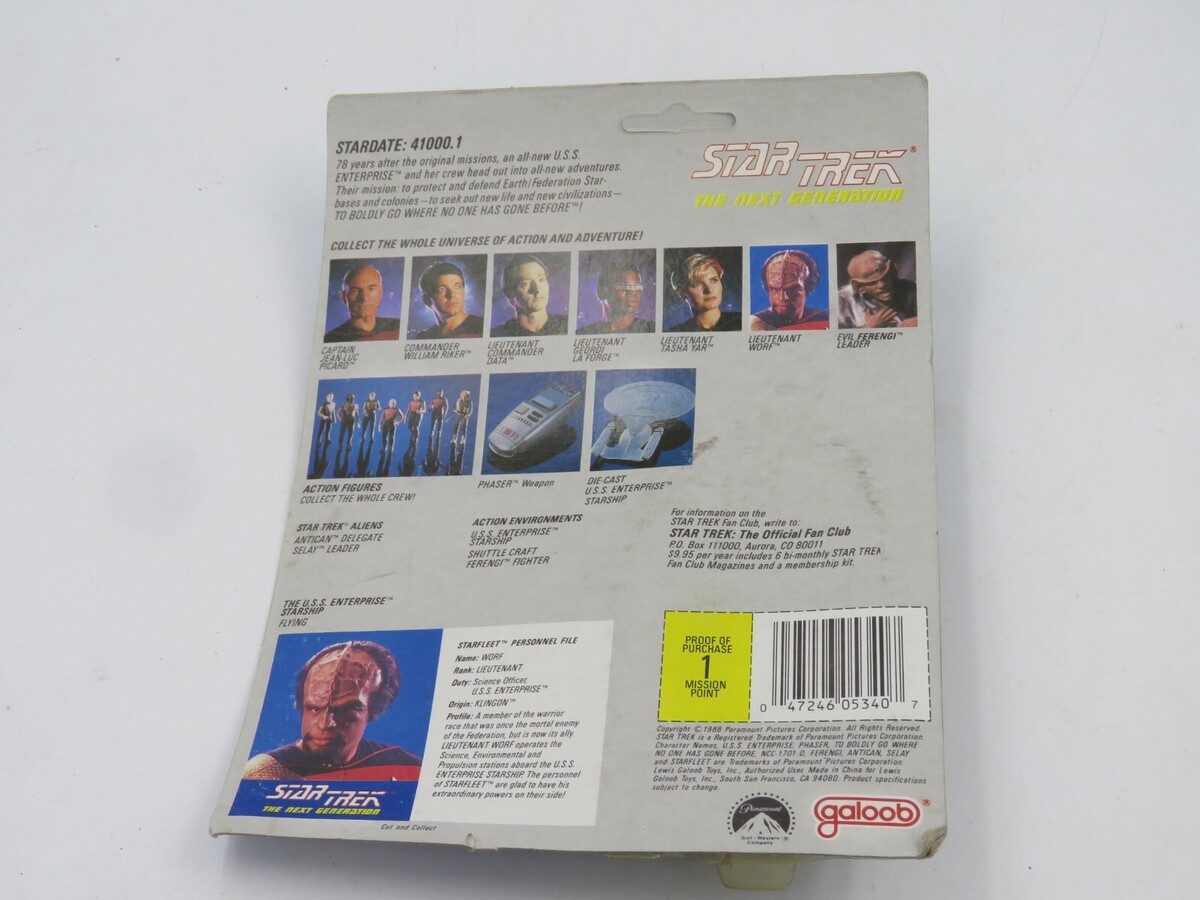 - Star Trek TNG Lieutenant Worf Brand NEW Sealed Action Figure Galoob 1988