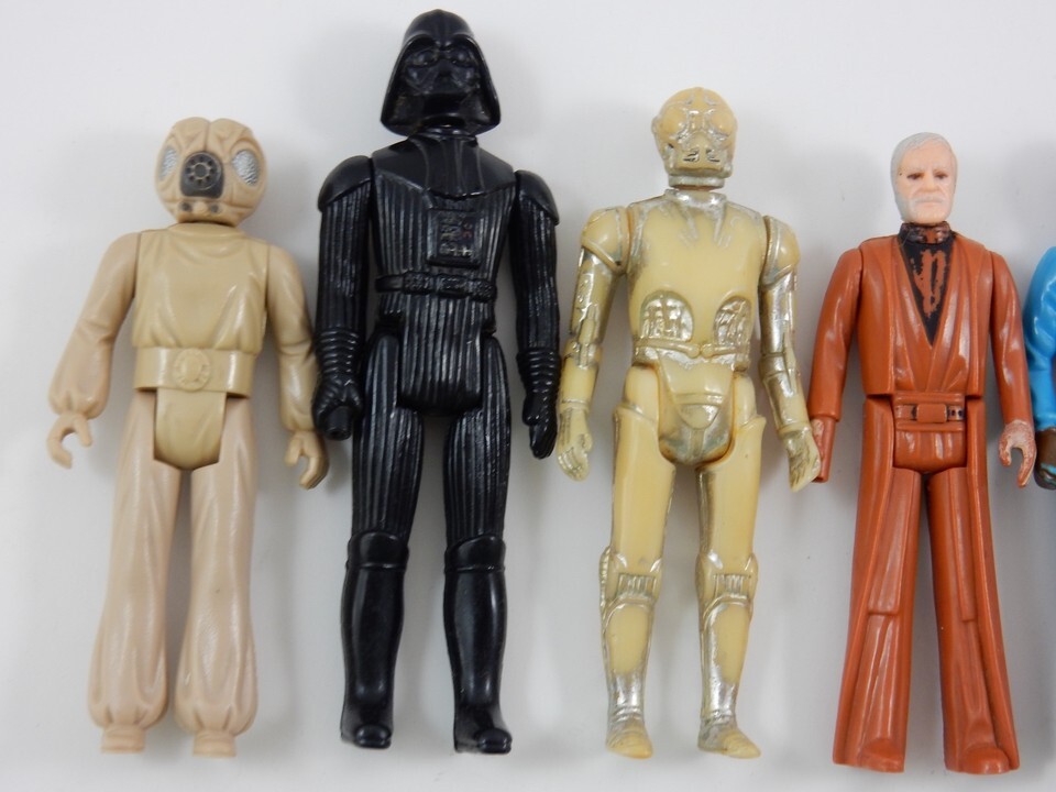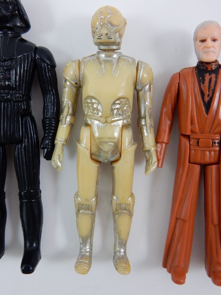 This Star Wars action figure set from 1977-1981 features five loose figures, each measuring 3.75 inches in size. These vintage action figures are a must-have for any Star Wars collector or fan, with each figure being an original. The set is perfect for display or play and would make a great addition to any collection. Don't miss out on the opportunity to own a piece of Star Wars history!