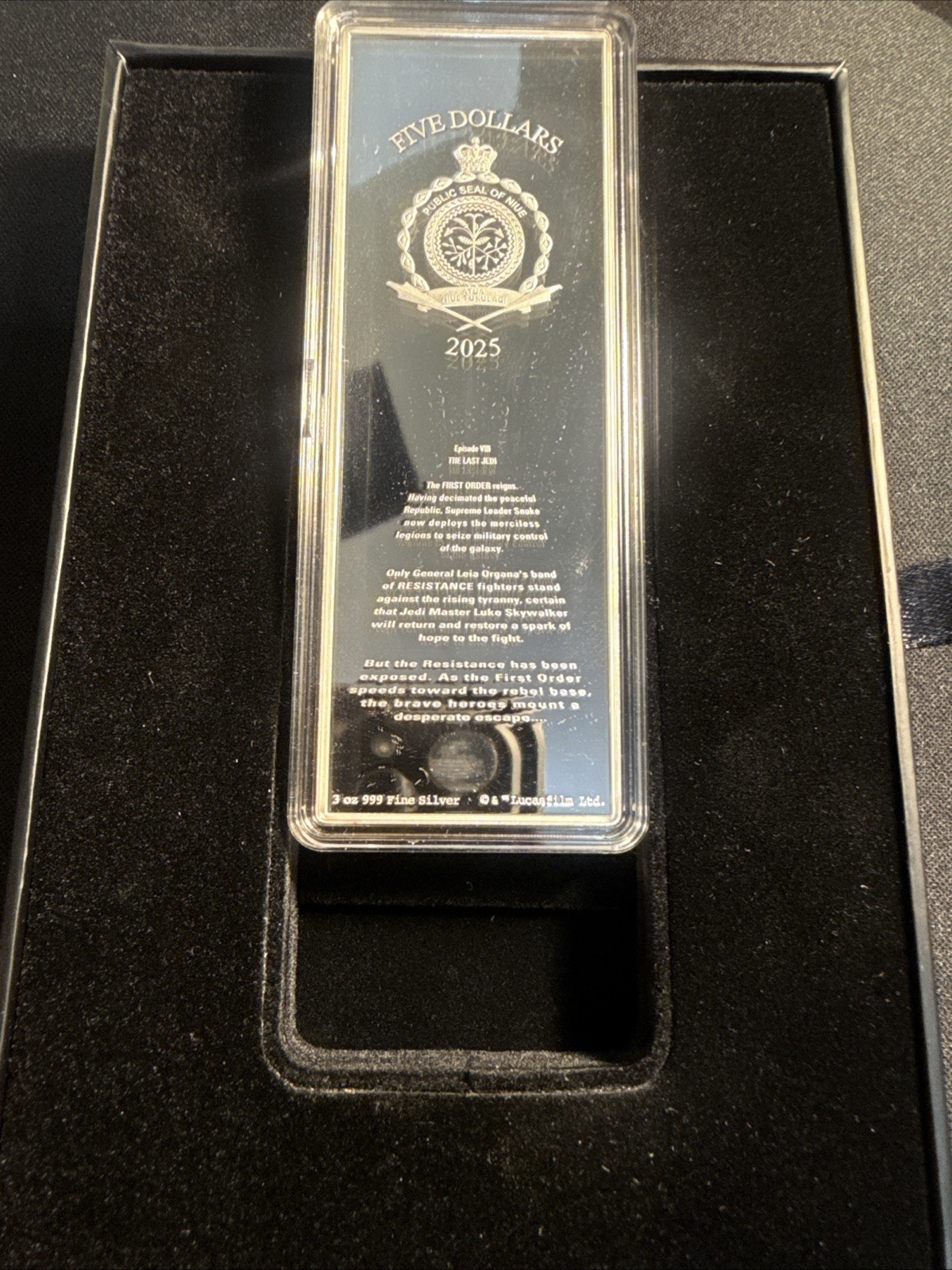 The Star Wars Last Jedi 3oz poster coin is a unique collectible item featuring a design inspired by the popular science fiction franchise. This officially licensed product captures the essence of the Star Wars universe, making it a must-have for fans and collectors alike. Displaying your love for the iconic franchise, this poster coin is a special addition to any Star Wars memorabilia collection.