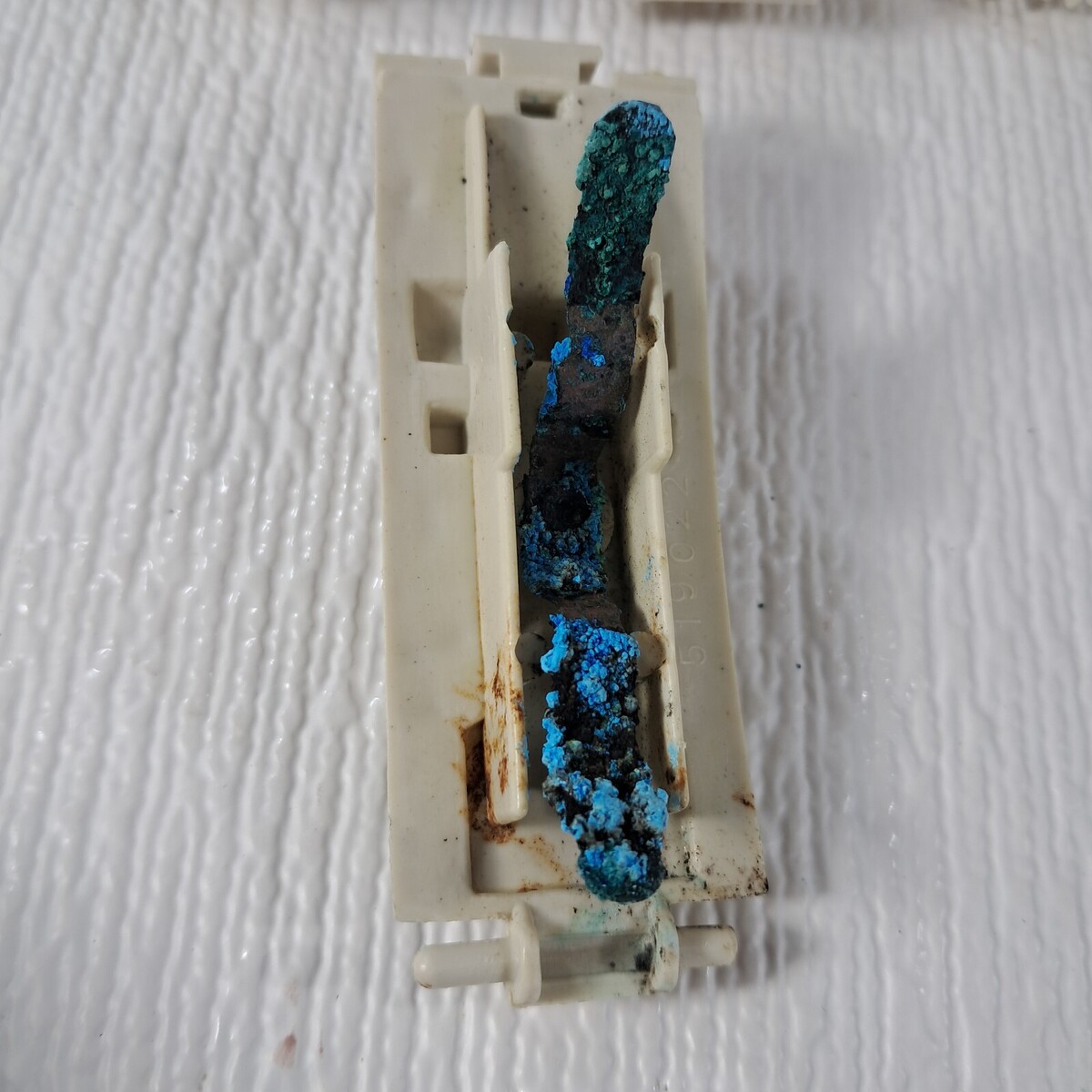 Battery cover has corrosion on the metal plates as shown. Some marks from play. See pics for details.