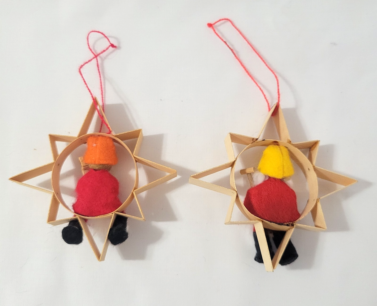 Star Wood Shaving Christmas Ornaments Lot 4 Felt Wood Elf Vintage Elves Beards