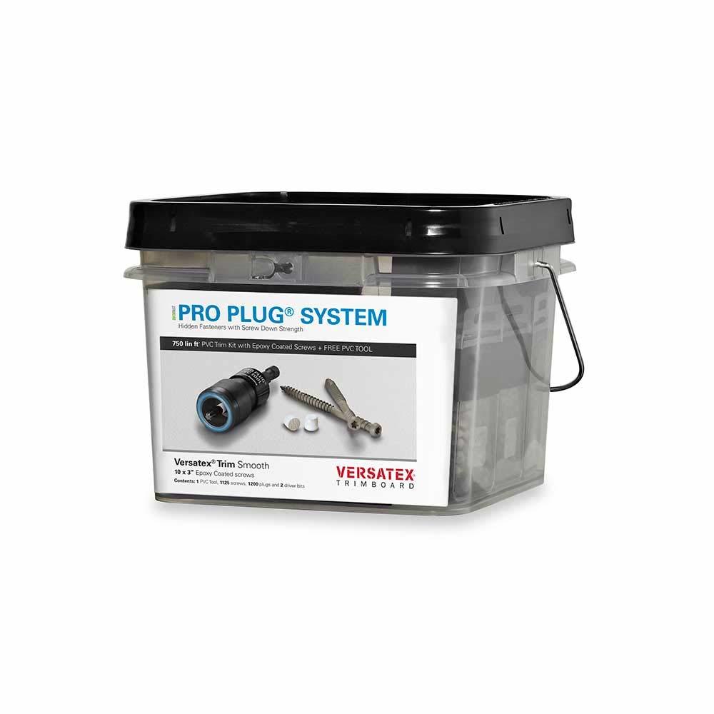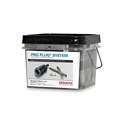 Product description: The Pro Plug System for VERSATEX Trim - 750 LInear Feet Pail is a superior and easy-to-install plug fastening system. With the epoxy coated or stainless steel fasteners, it gives builders the ability to choose the right screw for a wide variety of applications. The system features the PVC Tool (which drives screws to the correct depth without stripping the screw recess or damaging the deck board surface), star drive fasteners in both epoxy coated carbon steel and stainless steel (Grade 305 and Marine Grade 316), and plugs made from actual deck and trim material. When using the PVC Tool, the fasteners create a perfect hole for the matching plug, without pre-drilling. Note: Standard drills are recommended for use with the Pro Plug PVC Tool and Smart Bit Depth Setter. Impact drivers may not set the screw to the correct depth.
