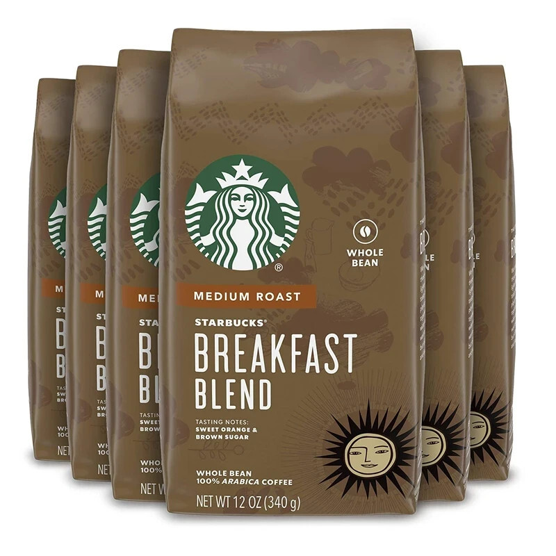 - Starbucks Breakfast Blend Whole Bean Med-Roast Coffee 6 Bags
