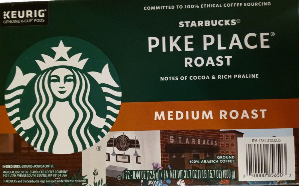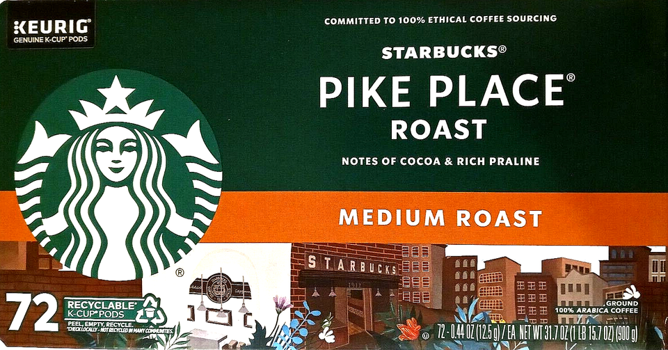 - Starbucks Pike Place Medium Roast 72 K-Cup Pods EXP 02/2026