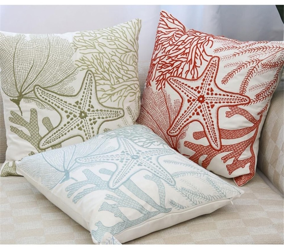 Specifications: Material: cotton and polyester mainly Design: Starfish and Cora leaf Size: approx, 18 x 18 inches Quantity: 1 piece Package includes: 1 x Decorative pillow cover Notes: Manual measurement, please allow slight errors on size. The color may exist a slight difference due to different screen displays.