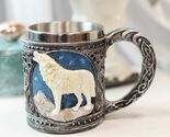 - Starry Night Mountains Celtic Howling White Wolf Coffee Mug And Wine Goblet Set