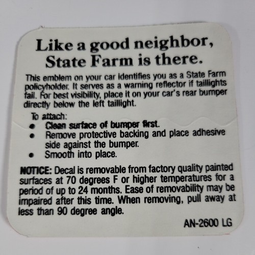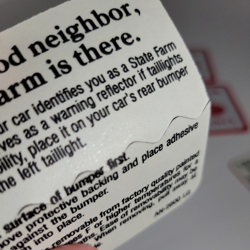 Set Of 6 Vintage State Farm Insurance Reflective Bumper Stickers.