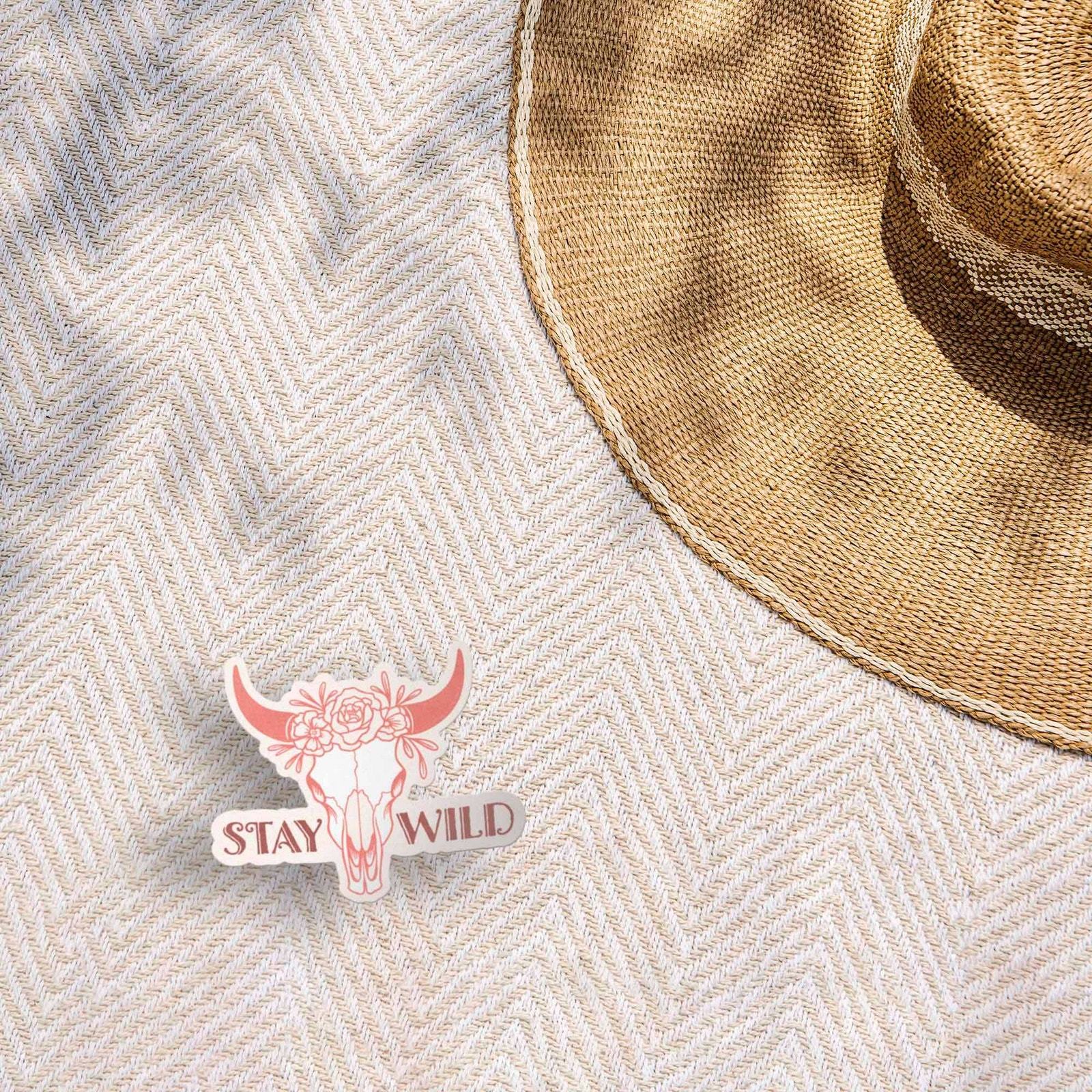 - Stay Wild Cow Skull Pink Cowgirl Vinyl Sticker