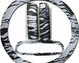 Steering wheel cover, seat belt covers & rear view mirror cover Silver Tiger