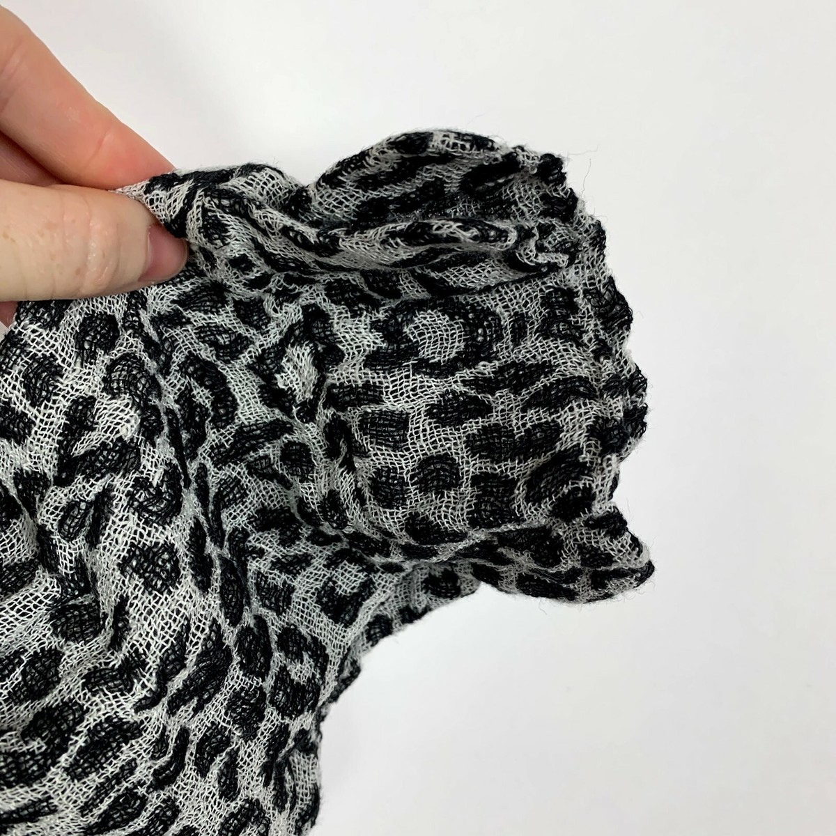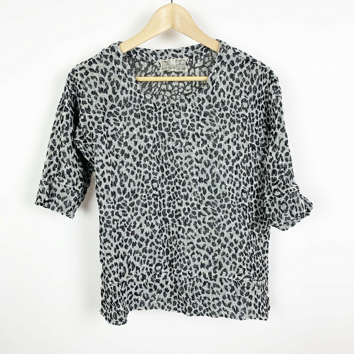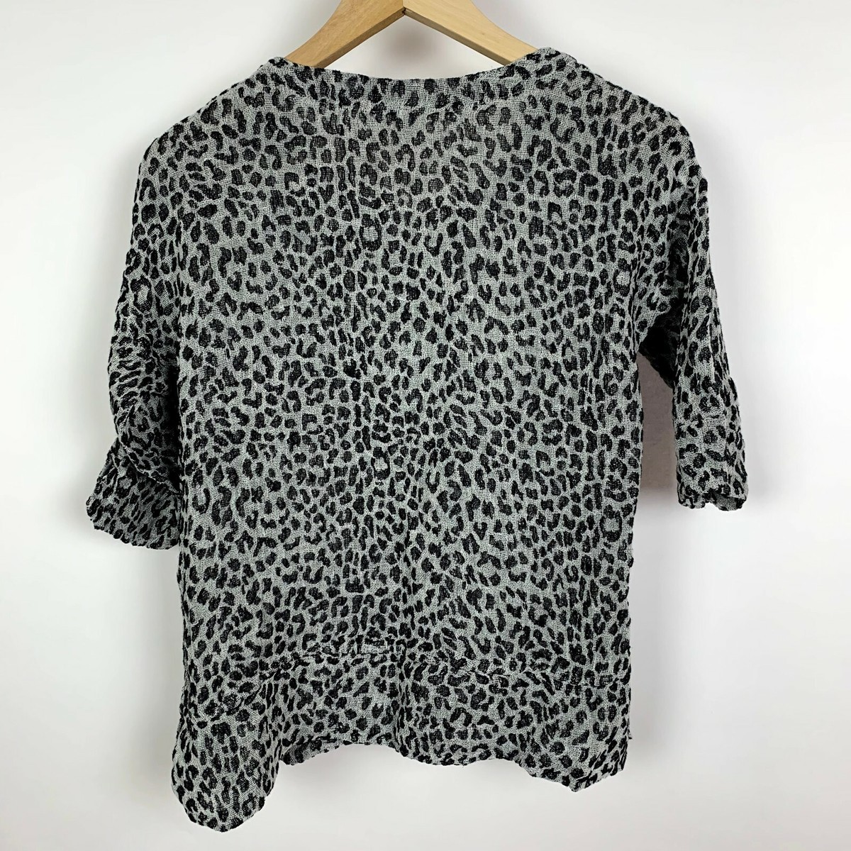 - Stella Moda Animal Print Linen Shirt Short Sleeve Crew Neck Size S Grey Black