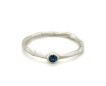 - Sterling 18k White Vermeil Bamboo w/ Bezel Set Blue Saphire Ring Sz 5.50