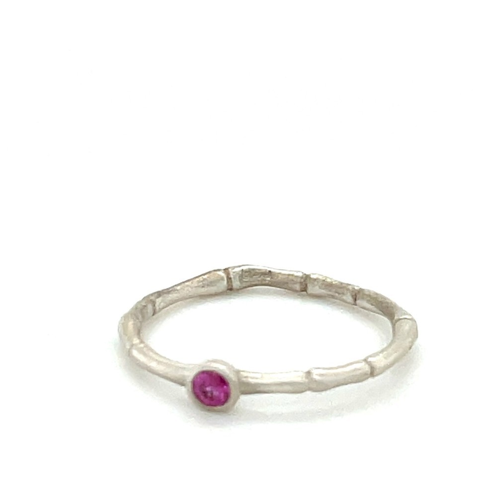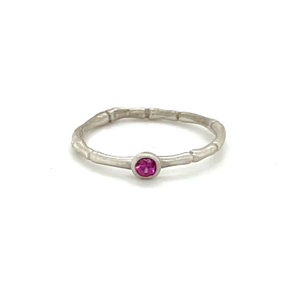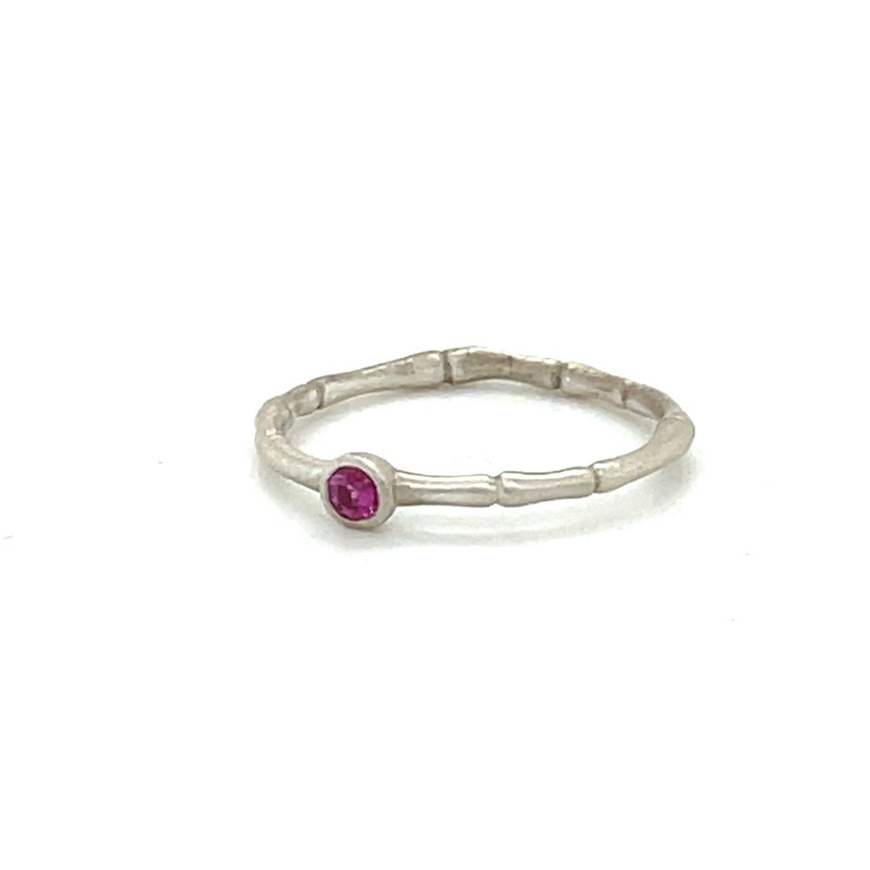 - Sterling 18k White Vermeil Bamboo w/ Bezel Set Ruby Ring Sz 5.50