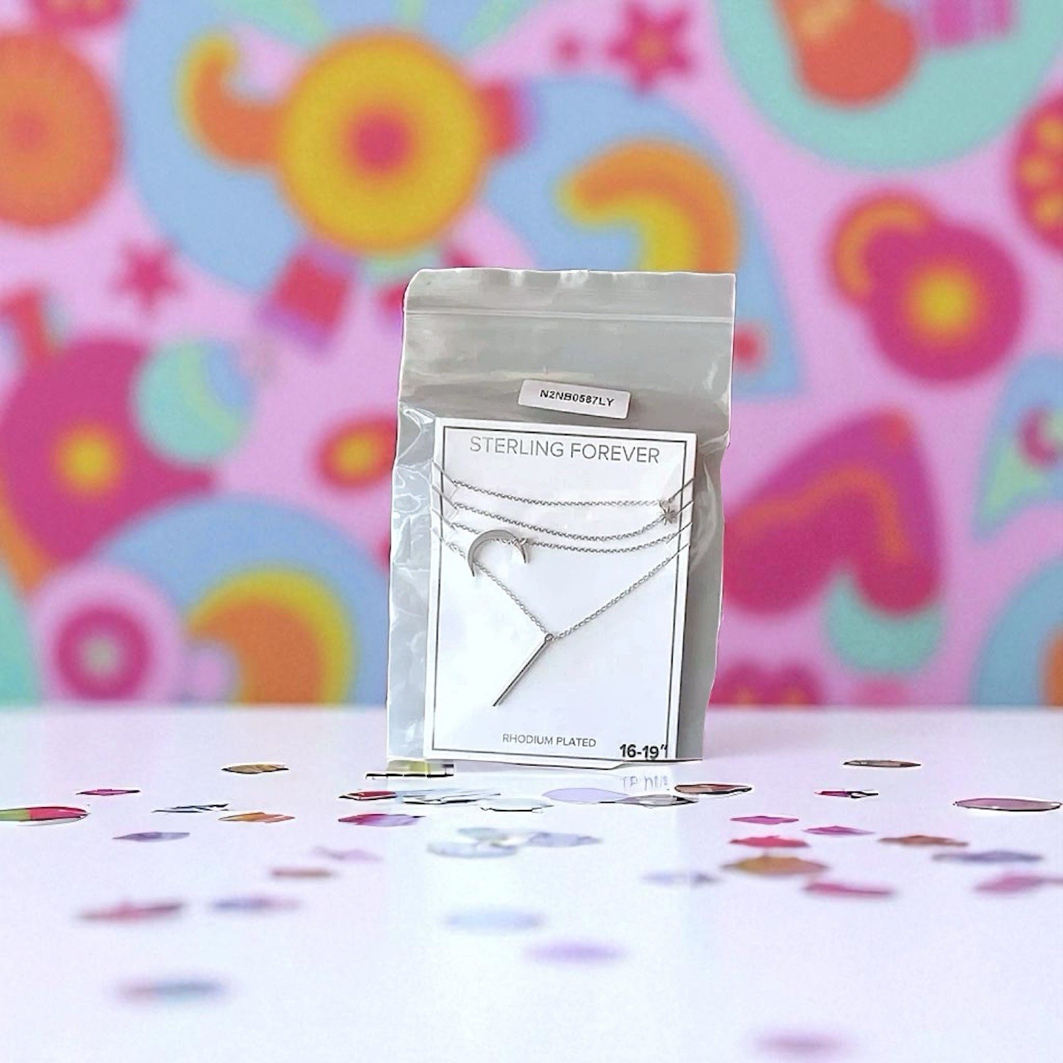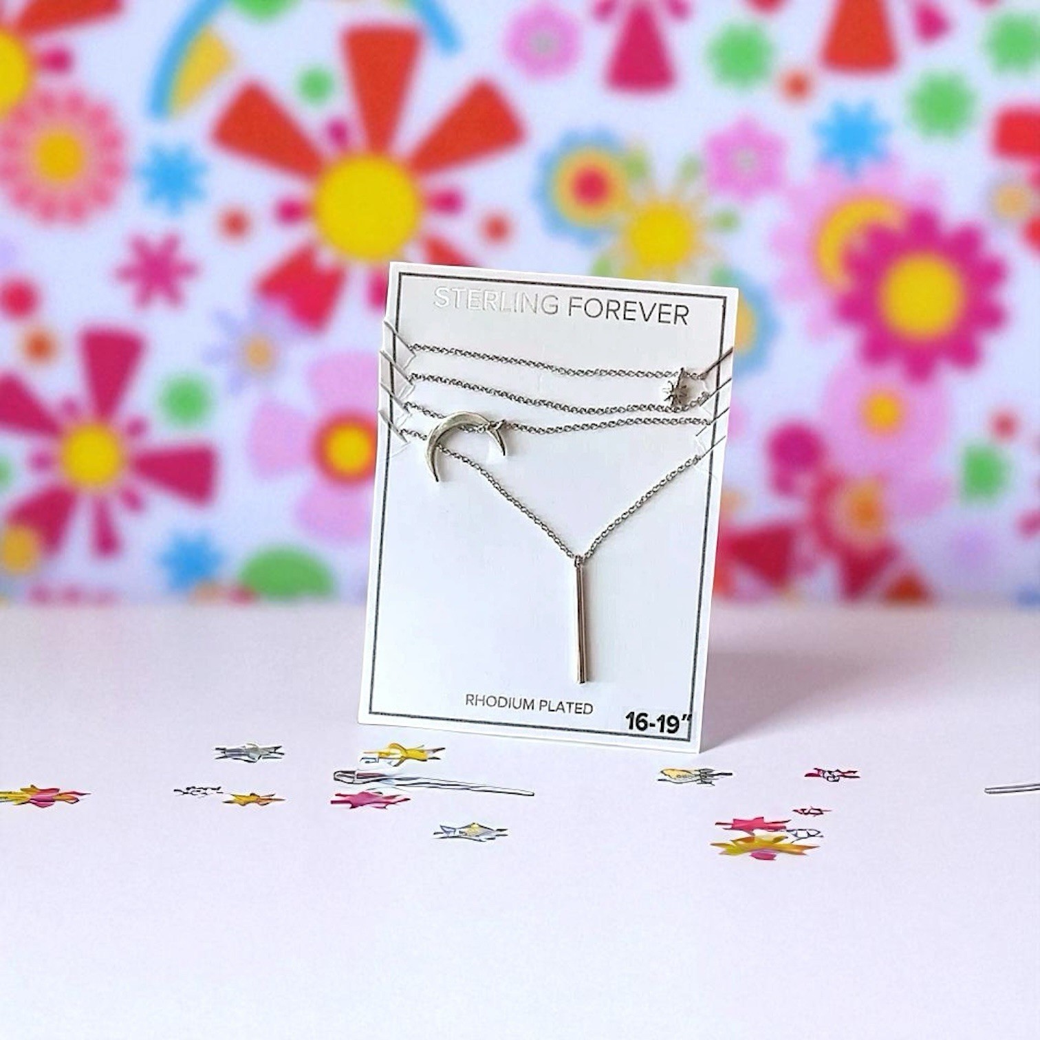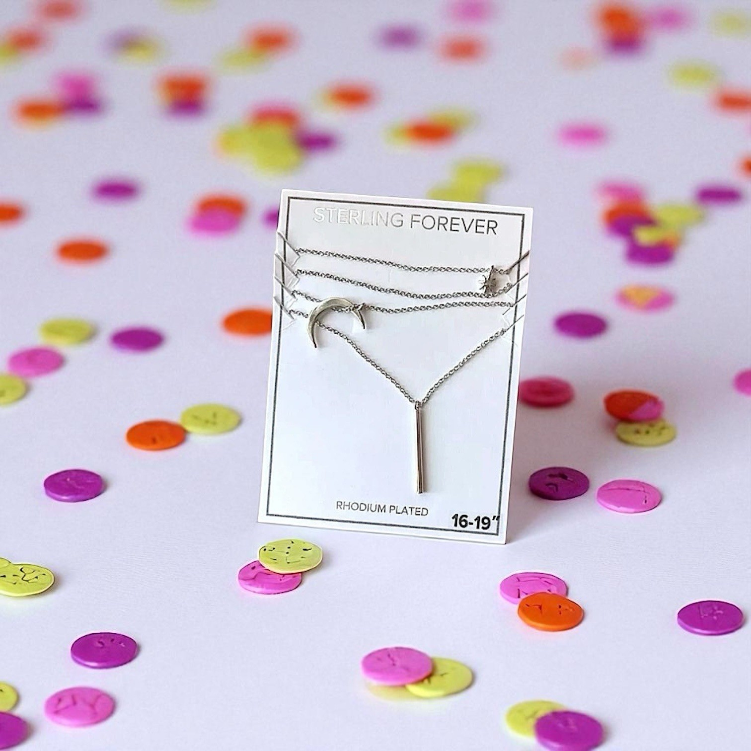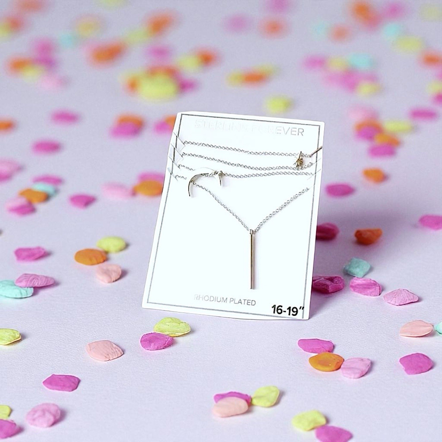 Sterling Forever Crescent & Bar Multi-Layer Necklace in Silver New With Tags