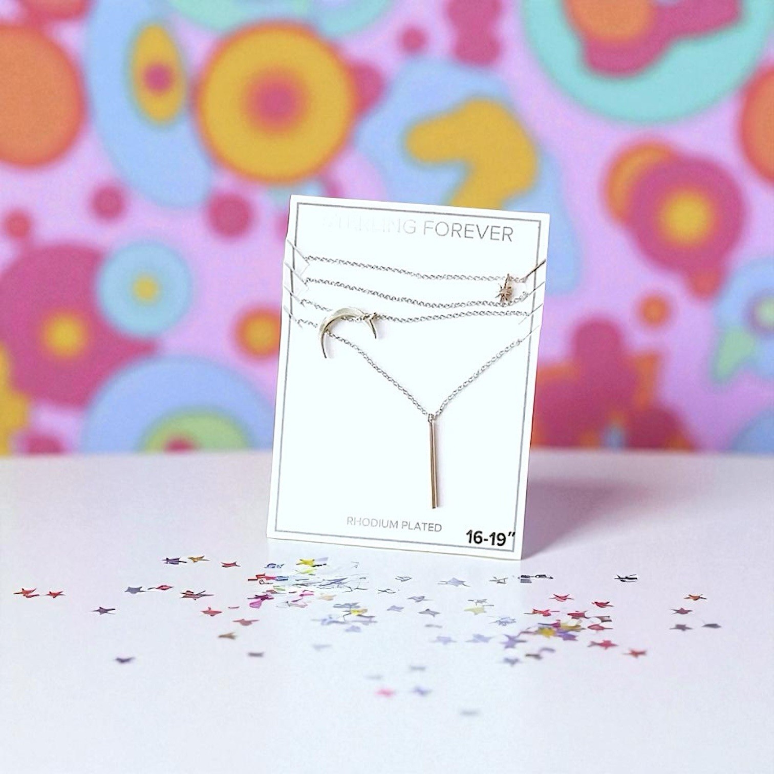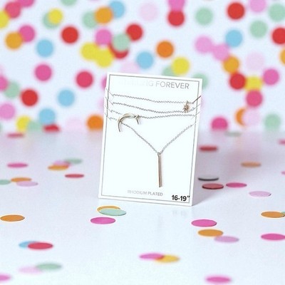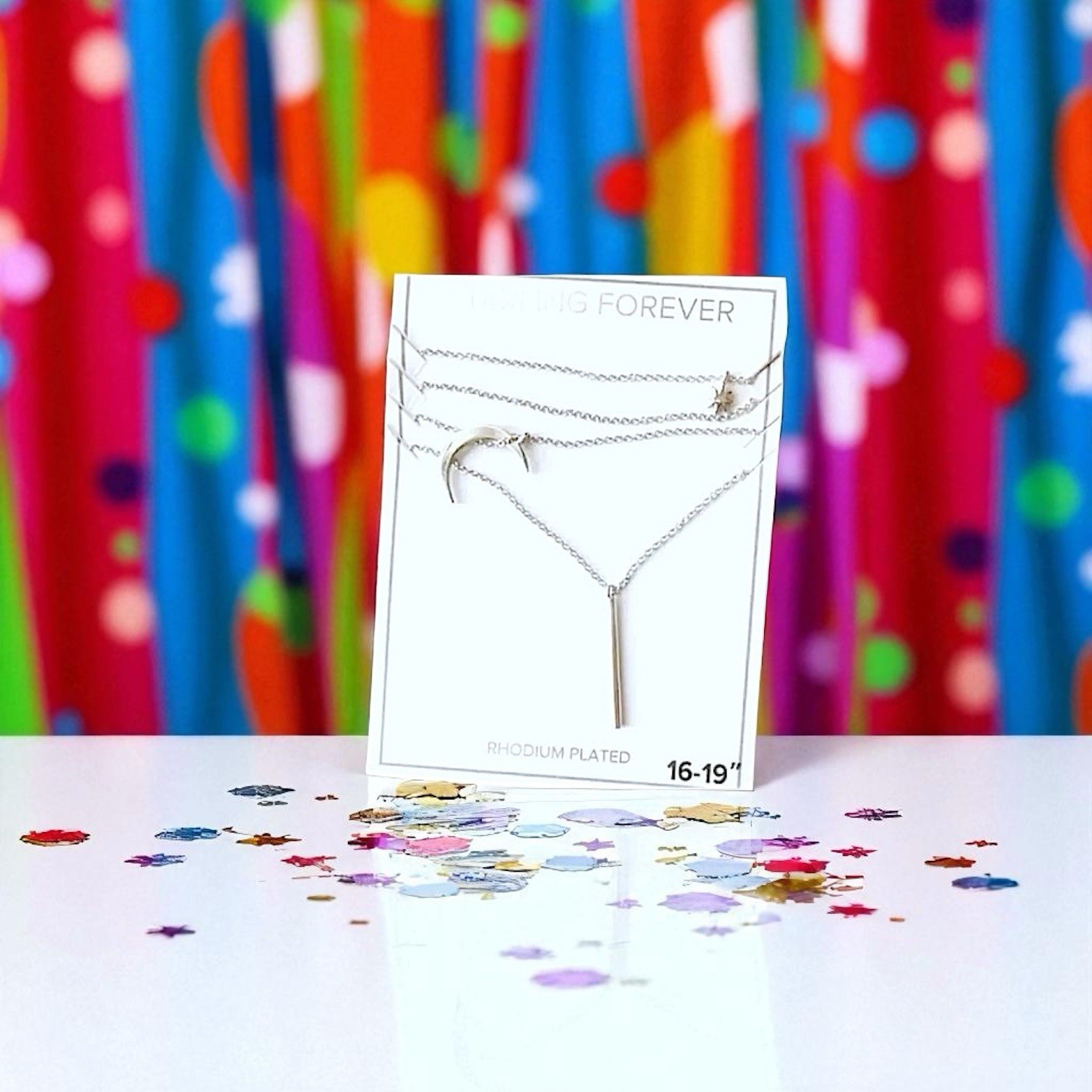 - Sterling Forever Crescent & Bar Multi-Layer Necklace in Silver New With Tags