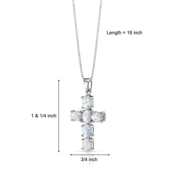 - Sterling Silver 3.00 Carat Opal Cross Pendant Necklace