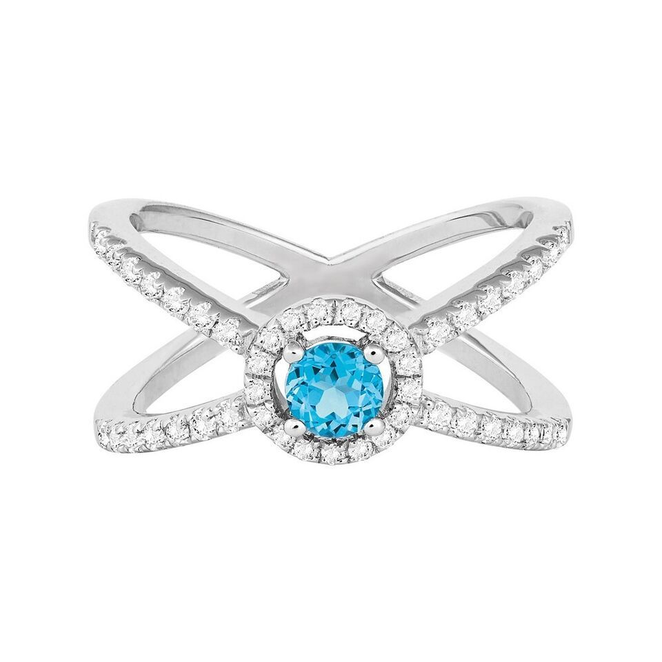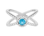 - Sterling Silver .335 ct Round Swiss Blue Topaz with .444 ct White Topaz Ring