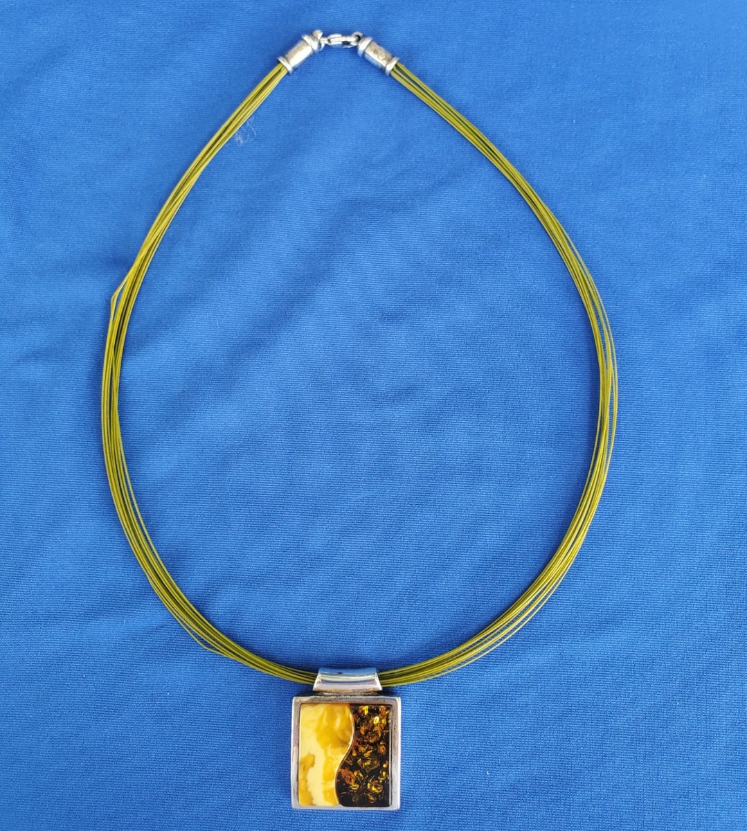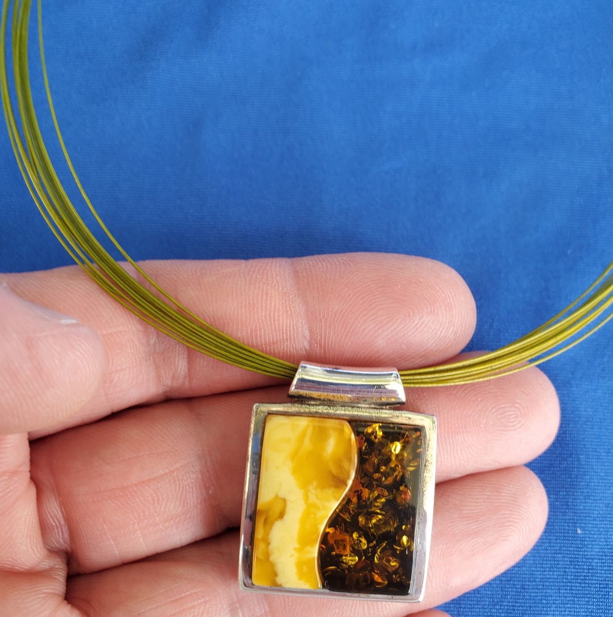 Exotic unusual modernist deco geometric style Baltic amber necklace measures 18" inch long.
