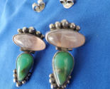 - Sterling Silver 925 Rose Quartz Chrysoprase Vintage Earrings Dangle Drops Estate