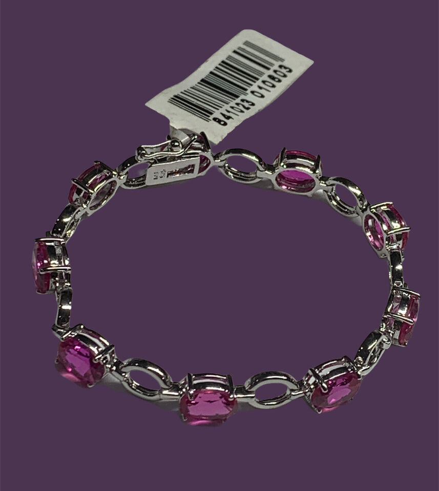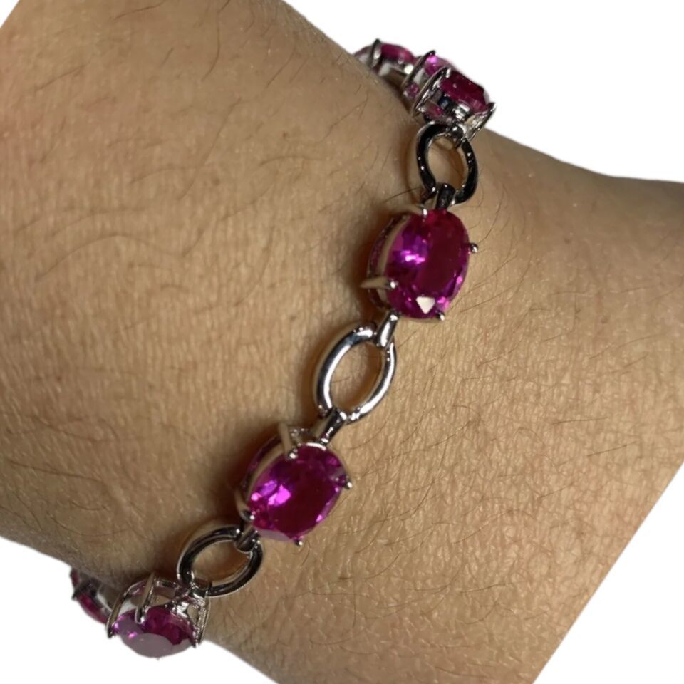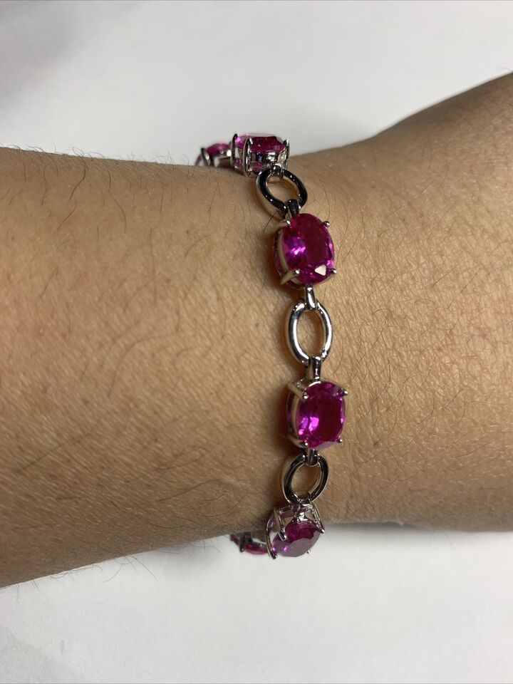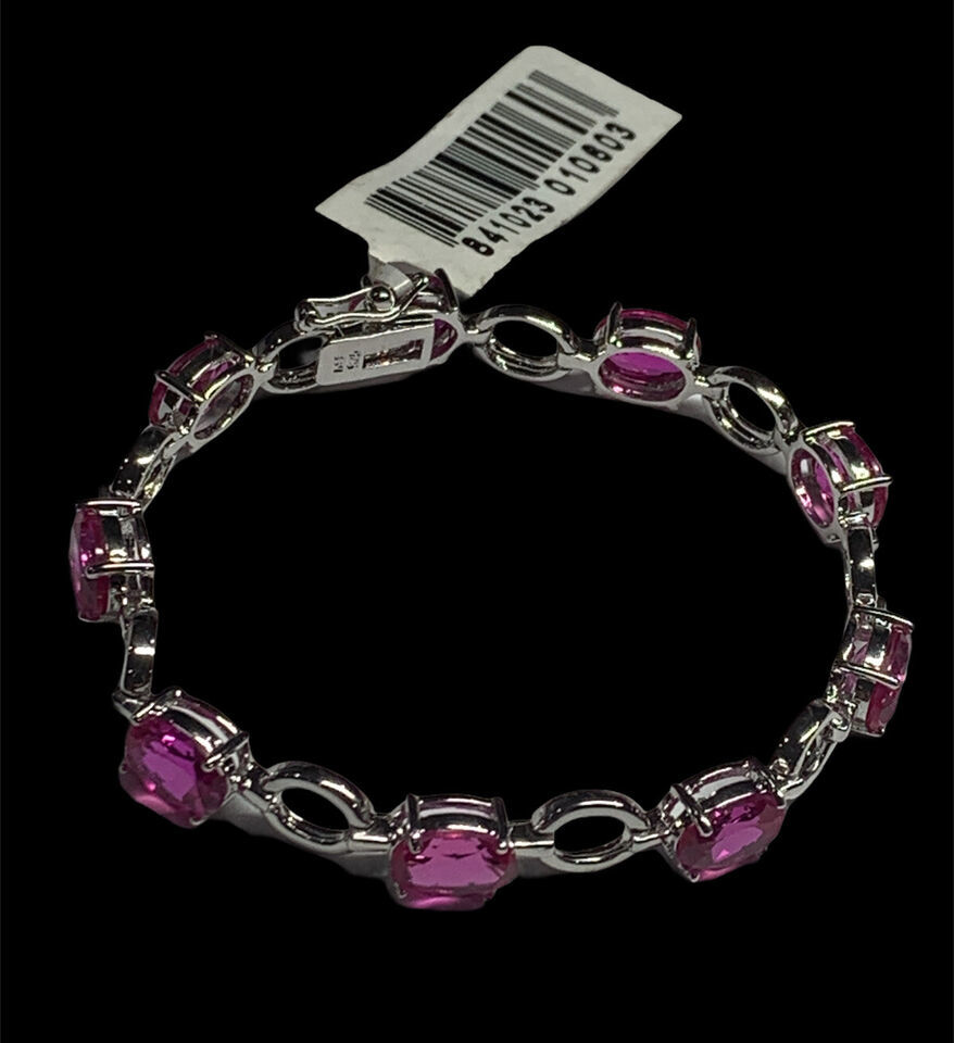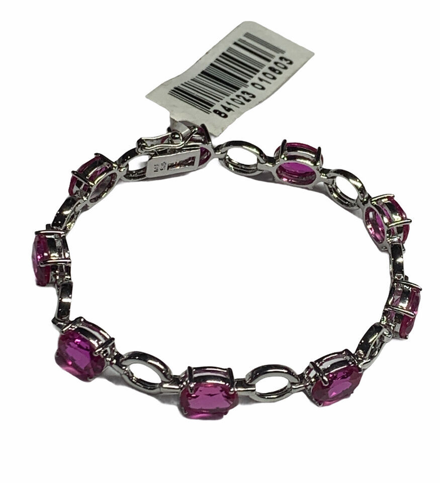 Sterling Silver 925 Signed RSE Pink Tennis Bracelet- 7? with Safety Clasp. Shipped with USPS First Class.