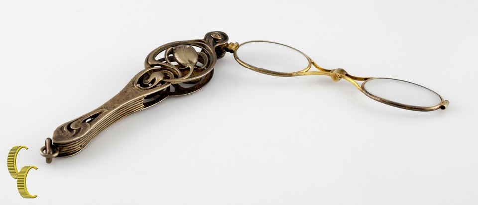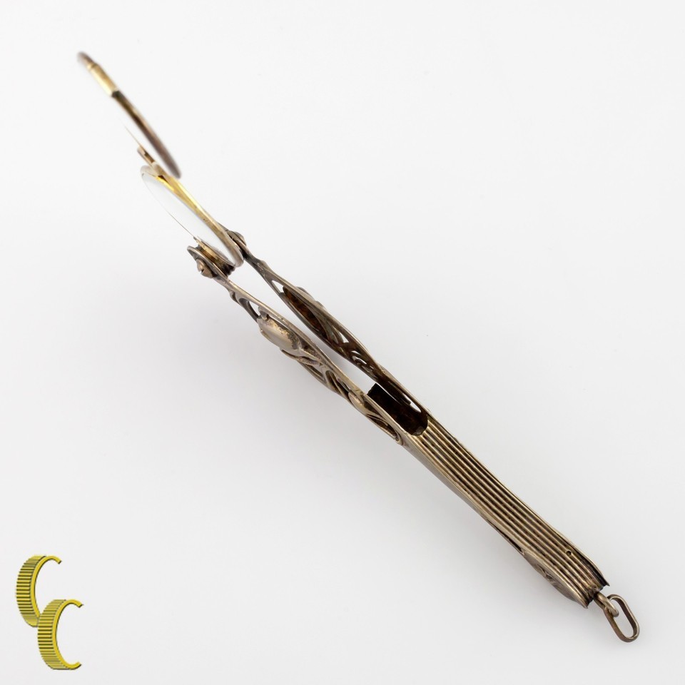 - Sterling Silver Antique Ornate Lorgnette Feather Loaded Eyeglasses All Origin...