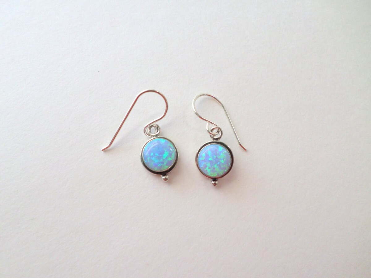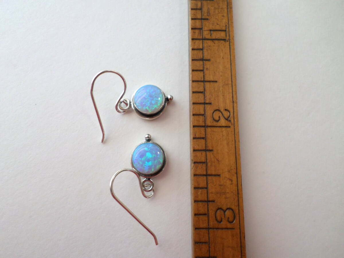 ?Size: Blue opal is .40 inches diameter, whole earring is approx 1 inch long