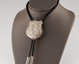 - Sterling Silver Etched Shield Bolo Tie with Braided Leather Strap