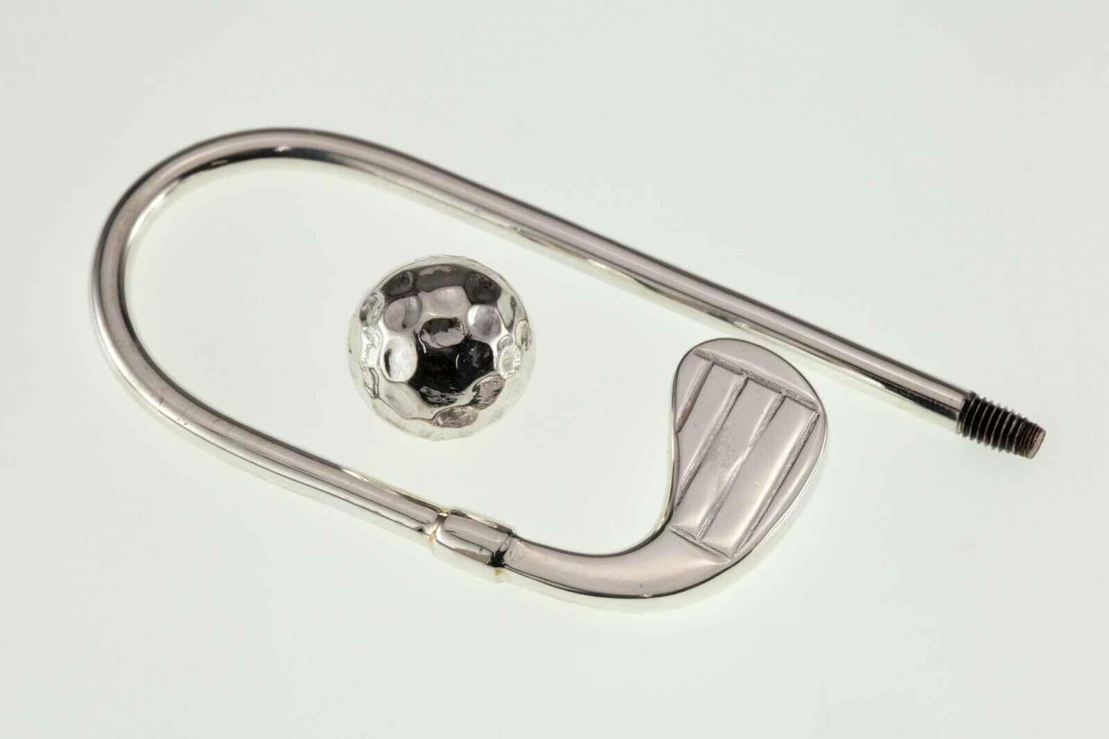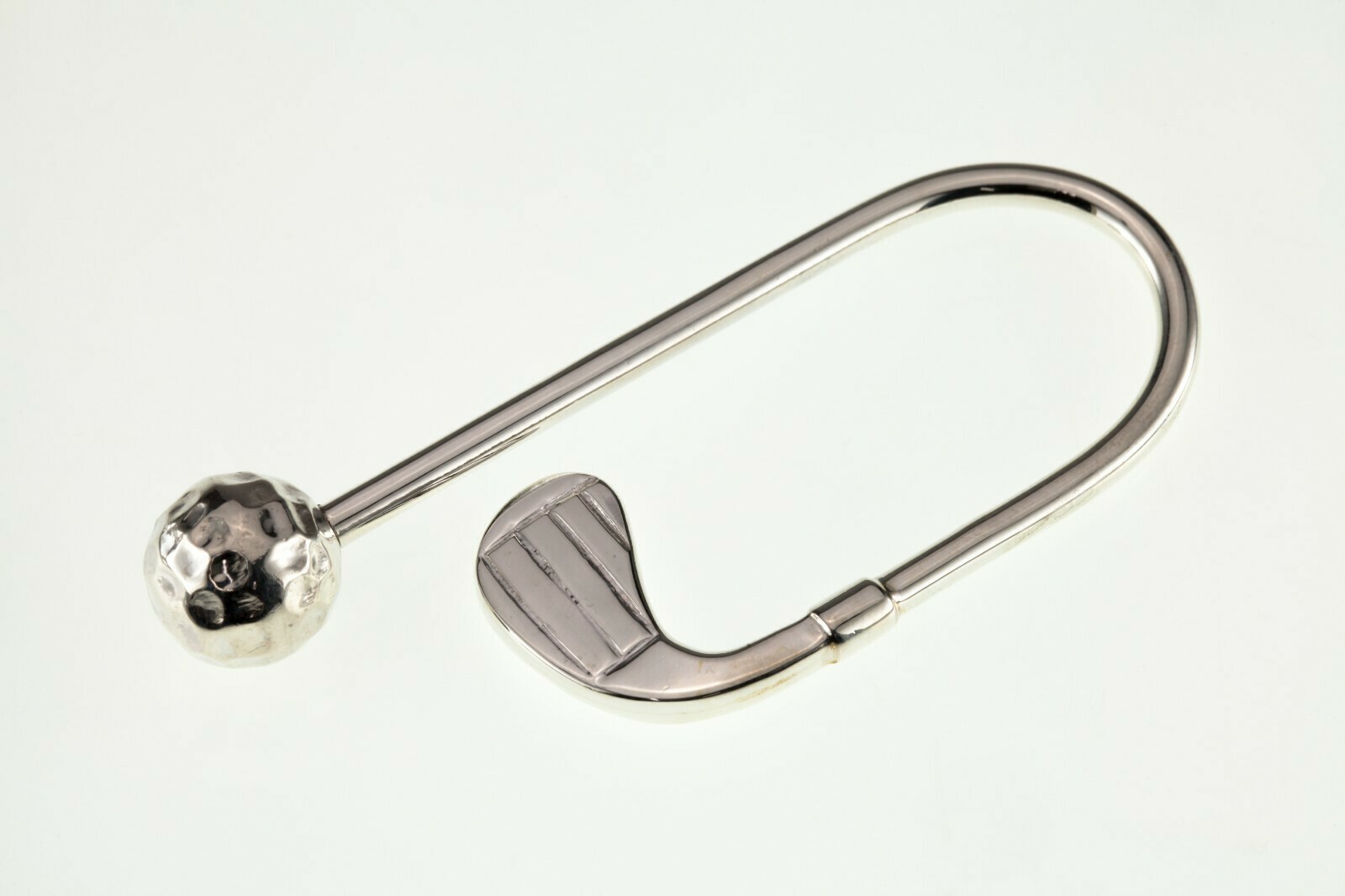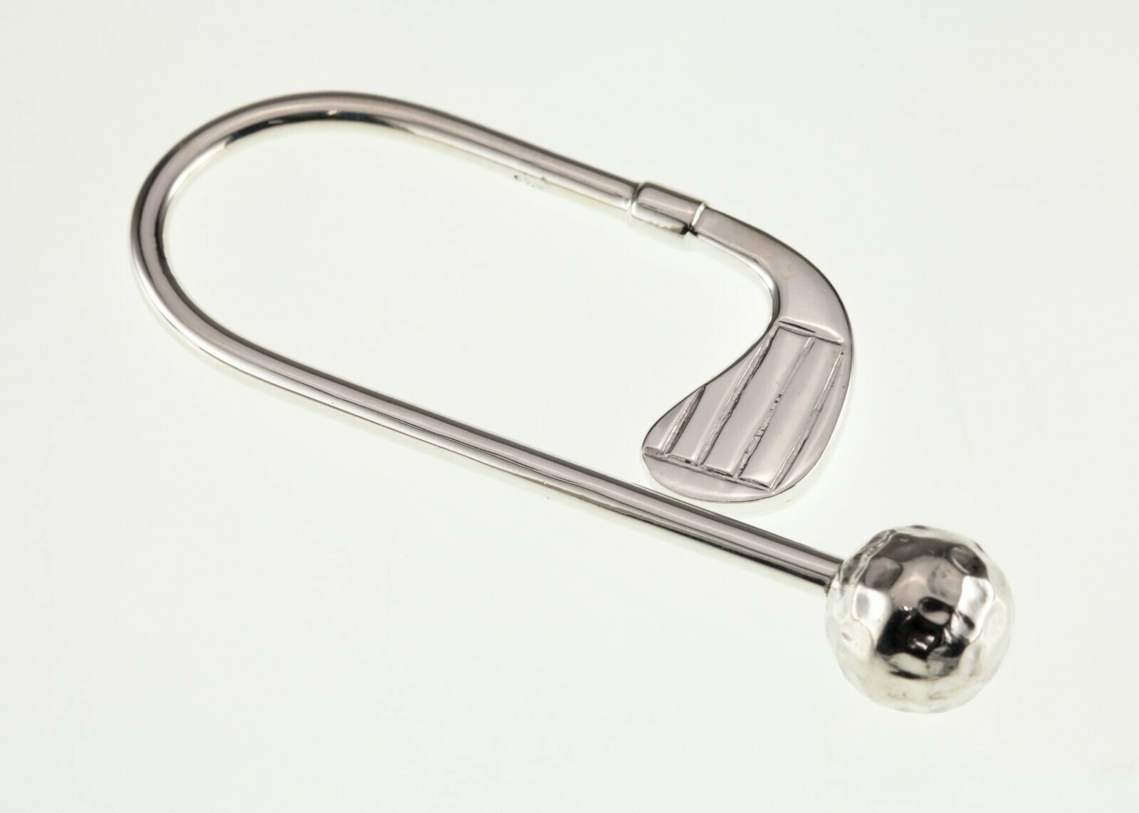 Gorgeous Sterling Silver Key Ring with a curved Golf Club with a removeable Golf Ball at the end.