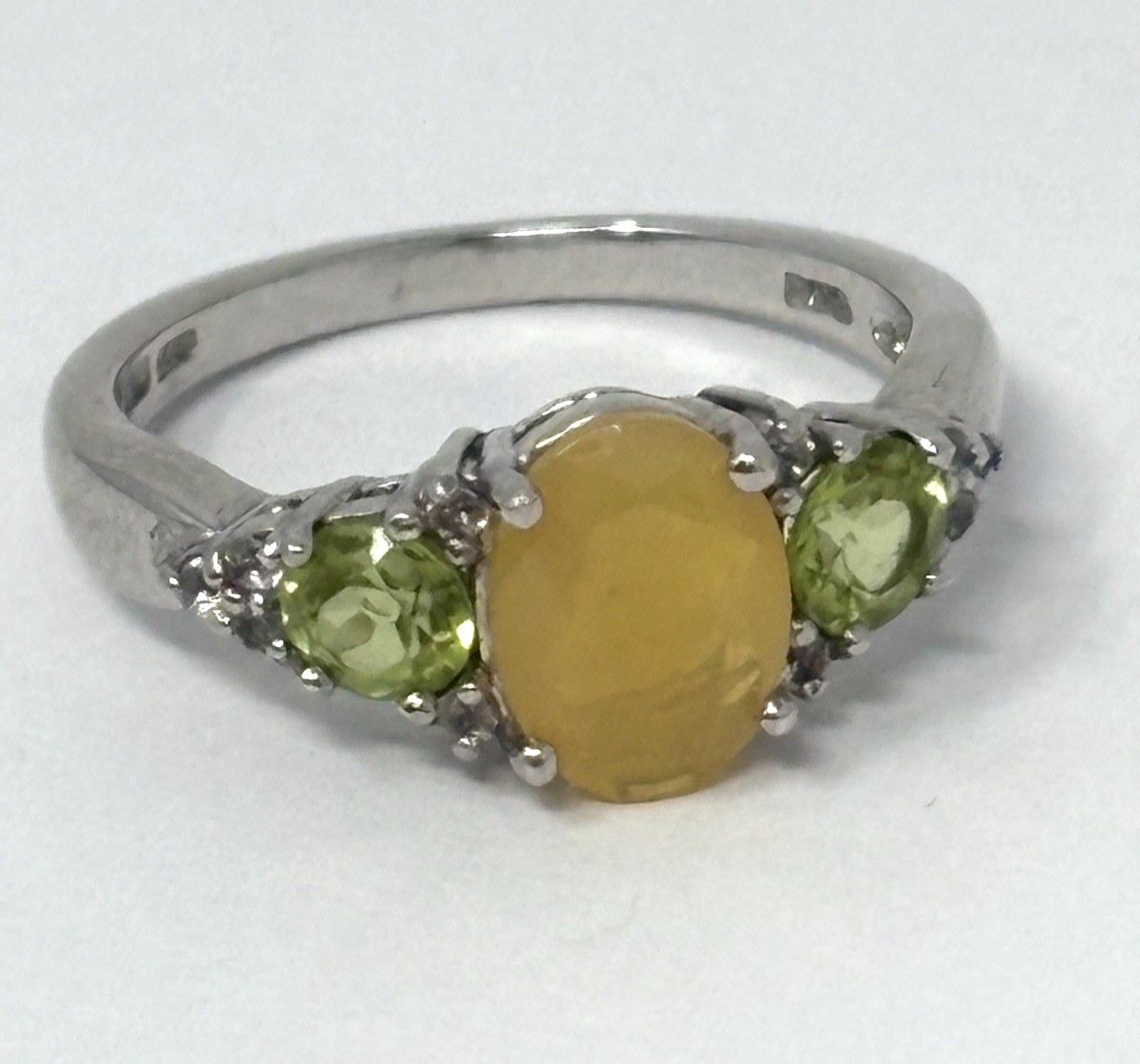 - Sterling Silver Lab Created Citrine and Peridot Ring, Size 6