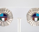 Gorgeous Sterling Silver Sunburst Earrings with Multi-color Lapidary Inlay in Center