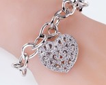 Features a large 26 mm wide CZ encrusted Heart Charm accented with a CZ female end Clasp