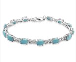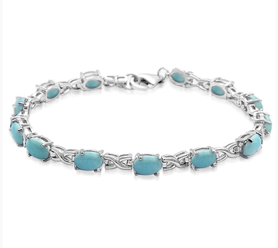 This stylish larimar bracelet is crafted from .925 polished Sterling Silver and features 13 oval shaped larimar stones. Each stone is set between sterling silver infinity links.