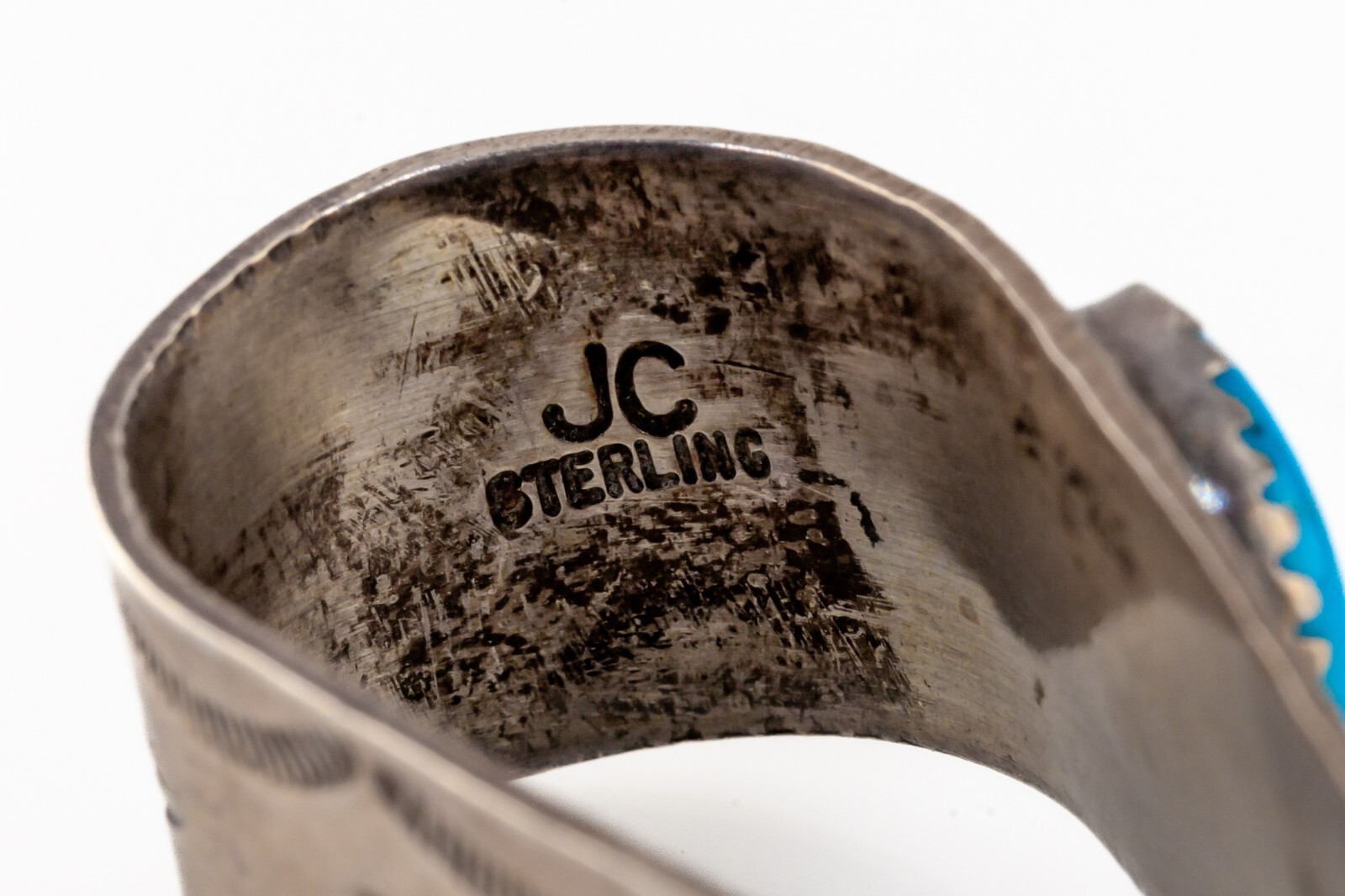 - Sterling Silver Navajo Baby Spoon Signed "JC" with Turquoise Accent