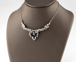 Sterling Silver Necklace Leaf Cluster Design Blue Marquise Stones and Cubic Zirconia