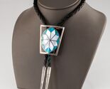 - Sterling Silver Onyx, Mother of Pearl, Turquoise Bolo Tie Signed Bennett