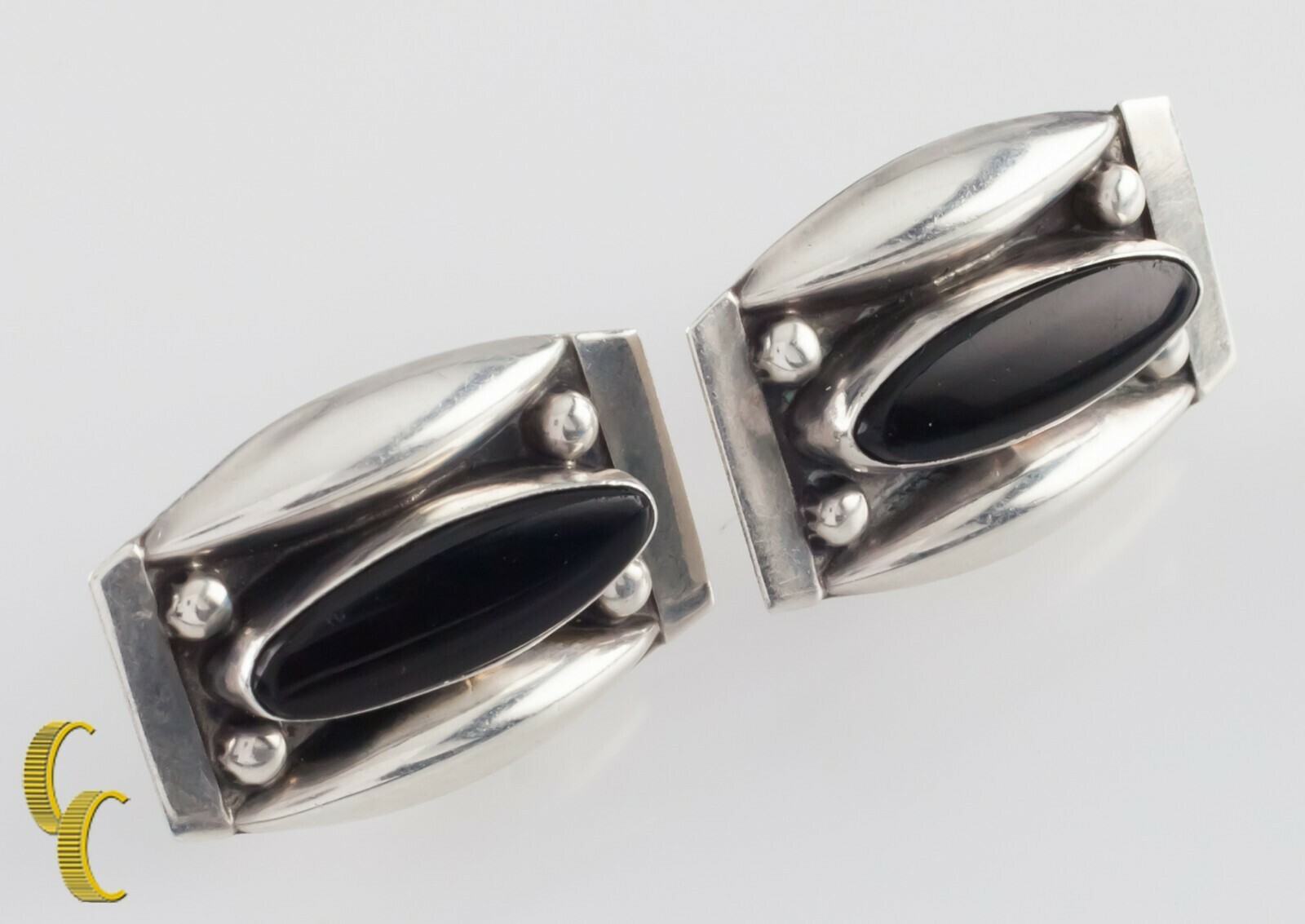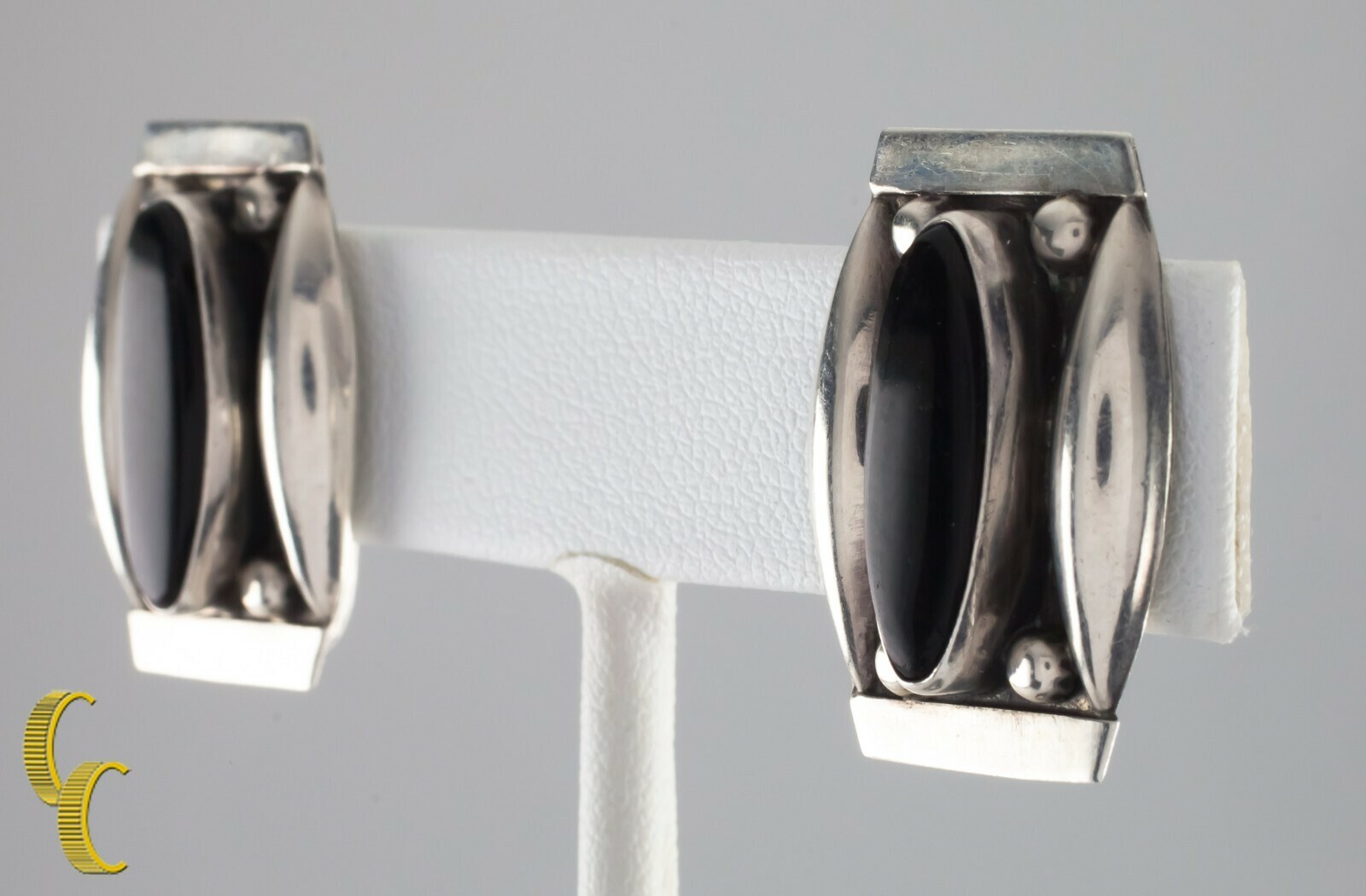 - Sterling Silver Onyx Vintage Screwback Earrings