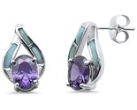 These pretty stud earrings are crafted from polished .925 Sterling Silver and feature a 16mm oval shape simulated amethyst stone with rectangular natural larimar stone accents.