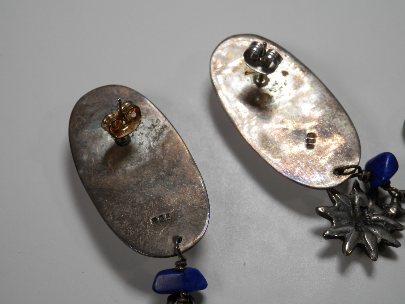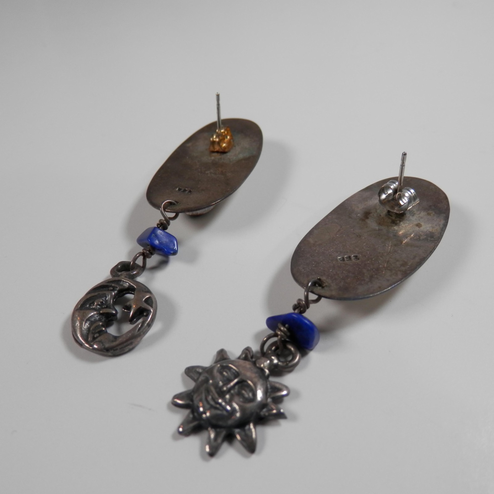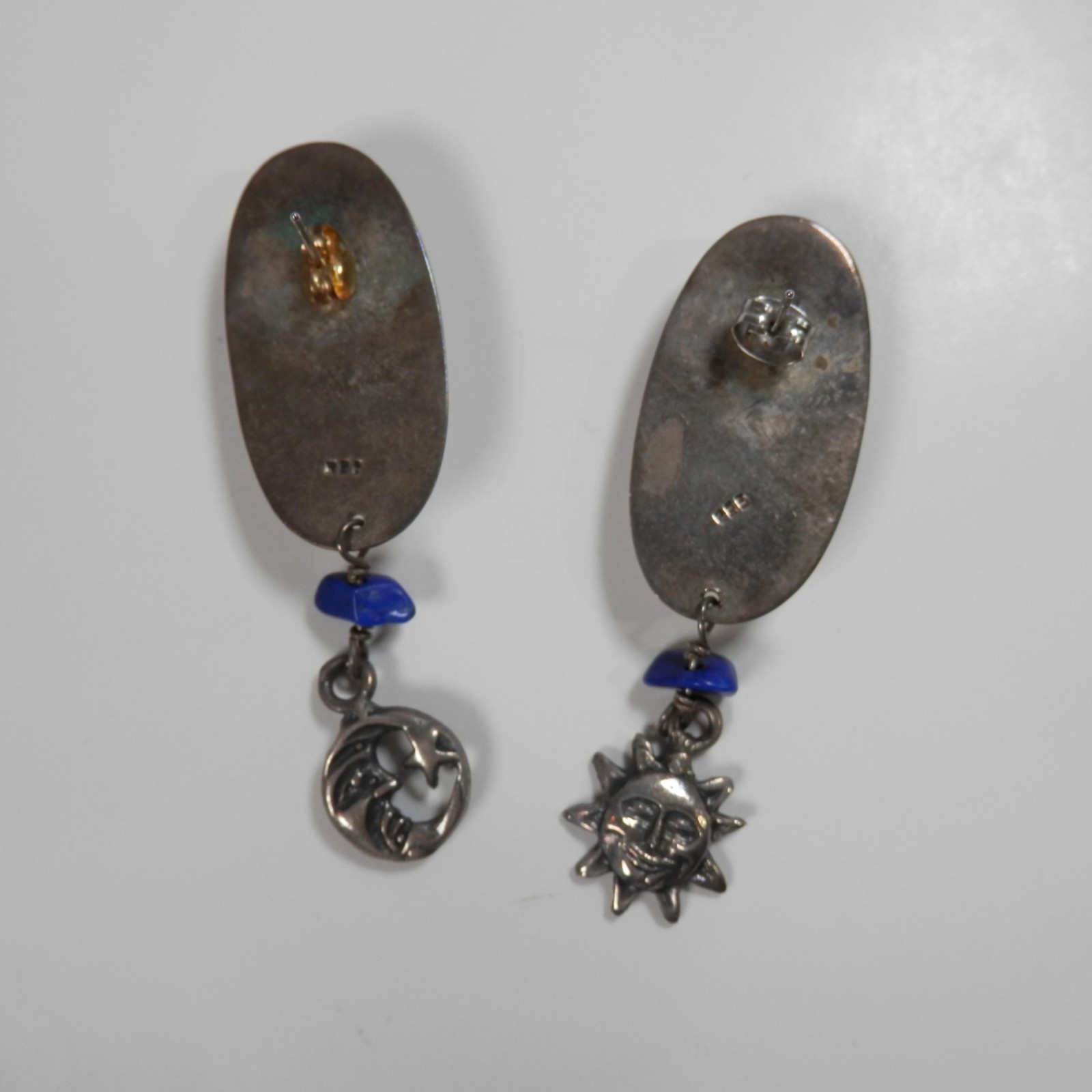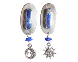 - Sterling Silver Polished Lapis Stone Sun & Moon Charm Dangle Earrings Bezel Oval