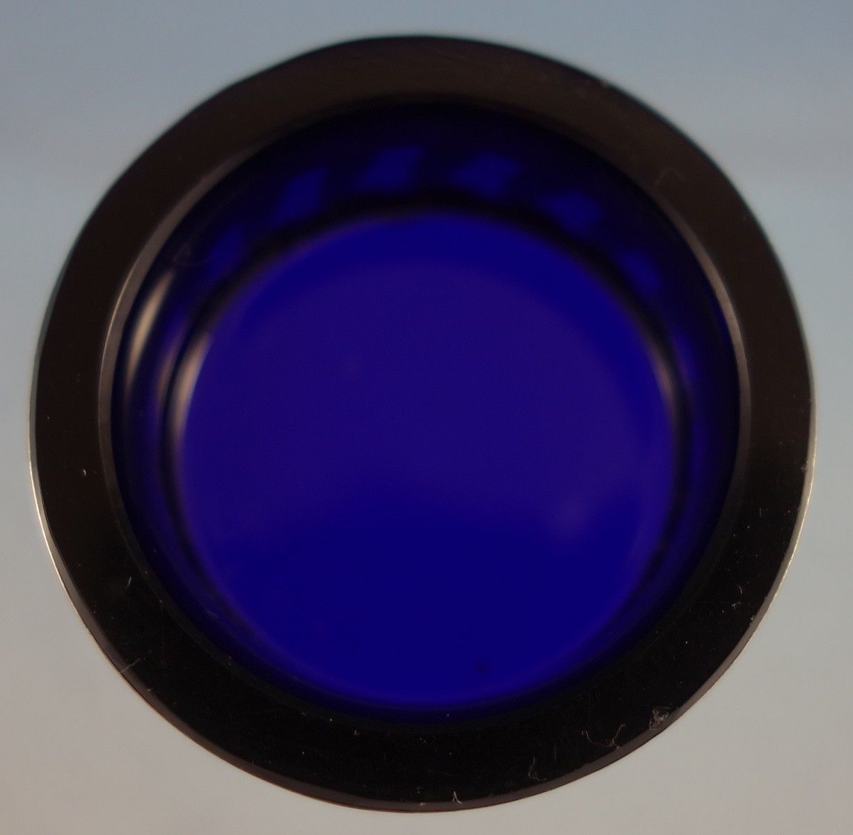 - Sterling Silver Salt Dip Pair Pierced with Glass Cobalt Liners (#2538)